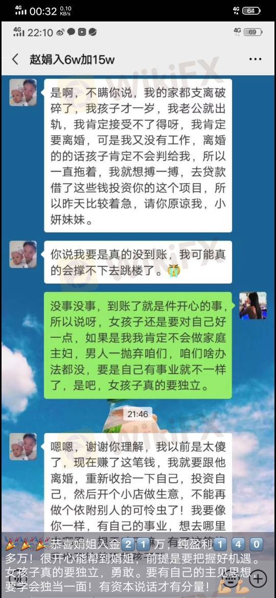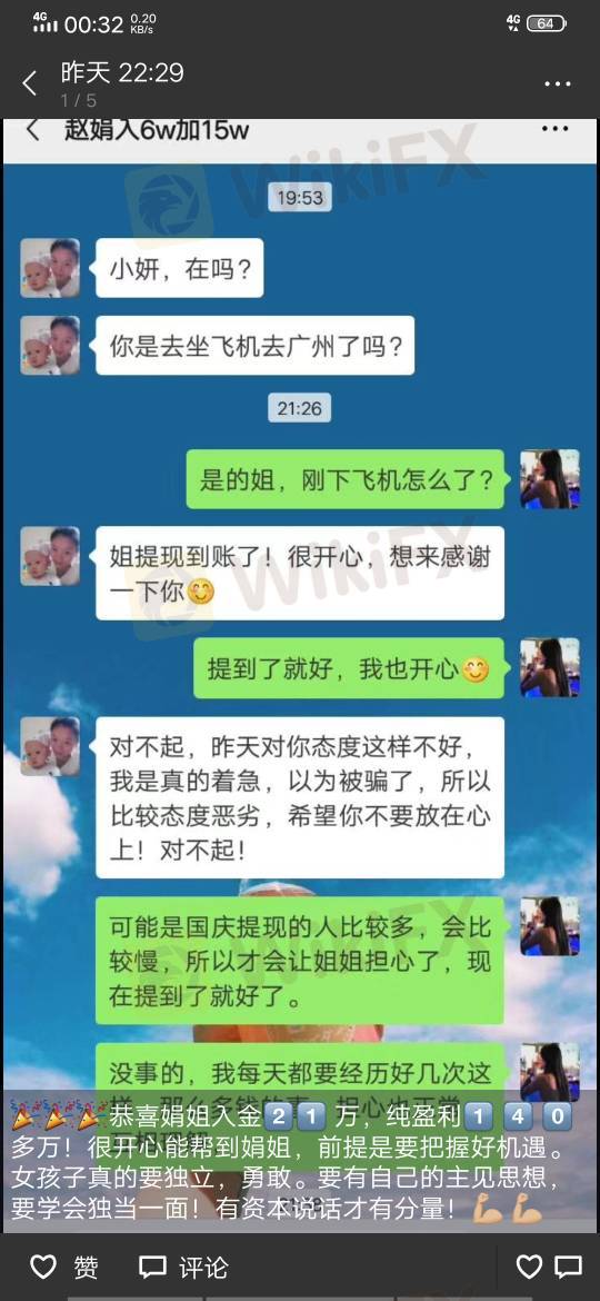 微信这个女的还在每天发虚假朋友圈宣传,诈骗这是黑平台大家不要相信,入金以后不能提现交了保证金还得交个人所得税,都是骗人的