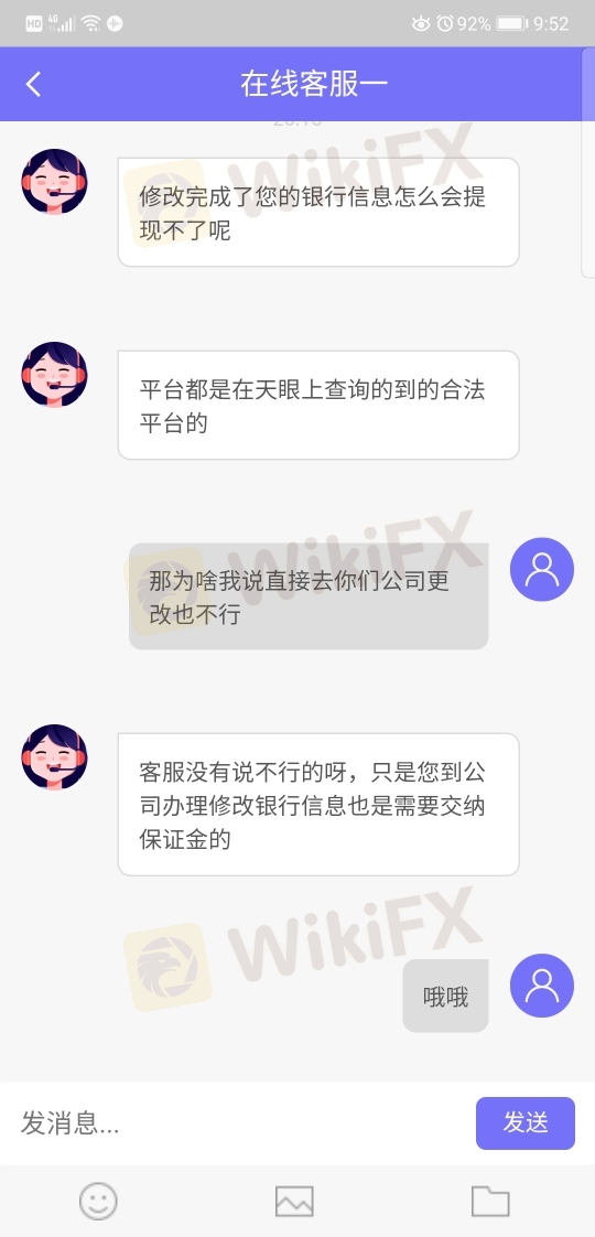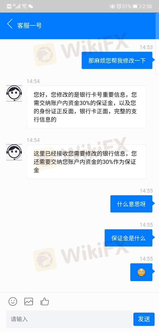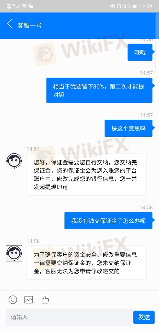 跟随技术员操作完成后,提现显示银行信息错误,要求交30%的保证金才能修改信息提现,已提供身份证和银行卡信息,还是不能提现