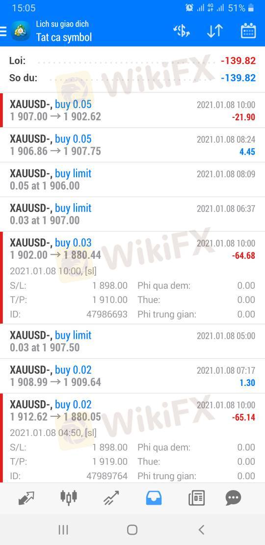 tôi cài 2 lệnh buy stop loss 1898 giá trượt xuống 1880 stop loss mới đóng