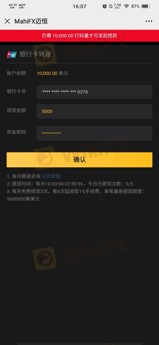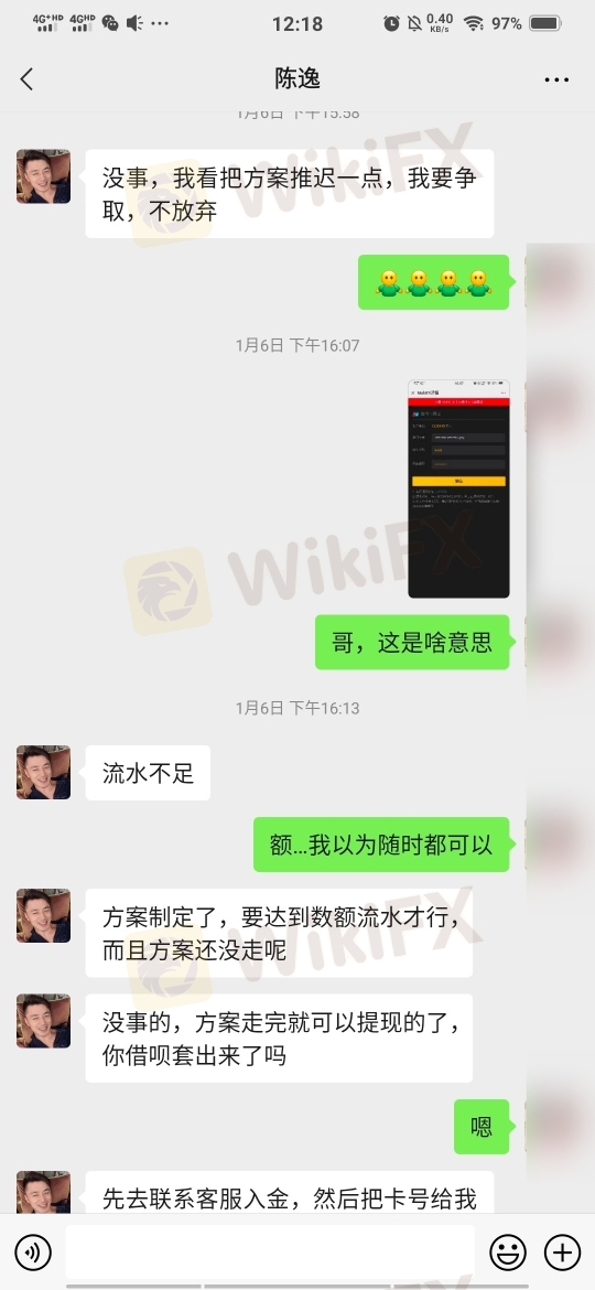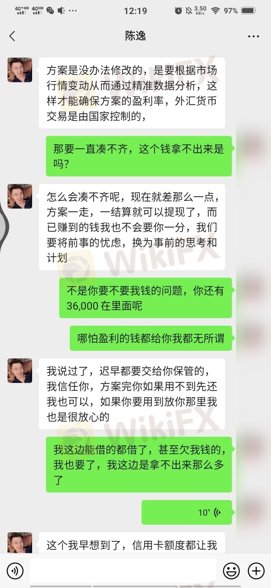 开始的时候聊天和你套近乎,后来说带着我赚零花钱,汇率1:7.1,最低是100美金,可以赚20美金,折合人民币142,第二次说可以投1000美金,人民币是7100,可以赚1420快钱,第三次说的是一万美金,说不稳定怕我损失,不让我冒险,有2万美金的方案让我走,去筹钱…没弄到钱就变了嘴脸,他说借给我3.6万,一共是10.2万入金,现在提不出来,就是个骗子团伙作案,大家需谨慎…