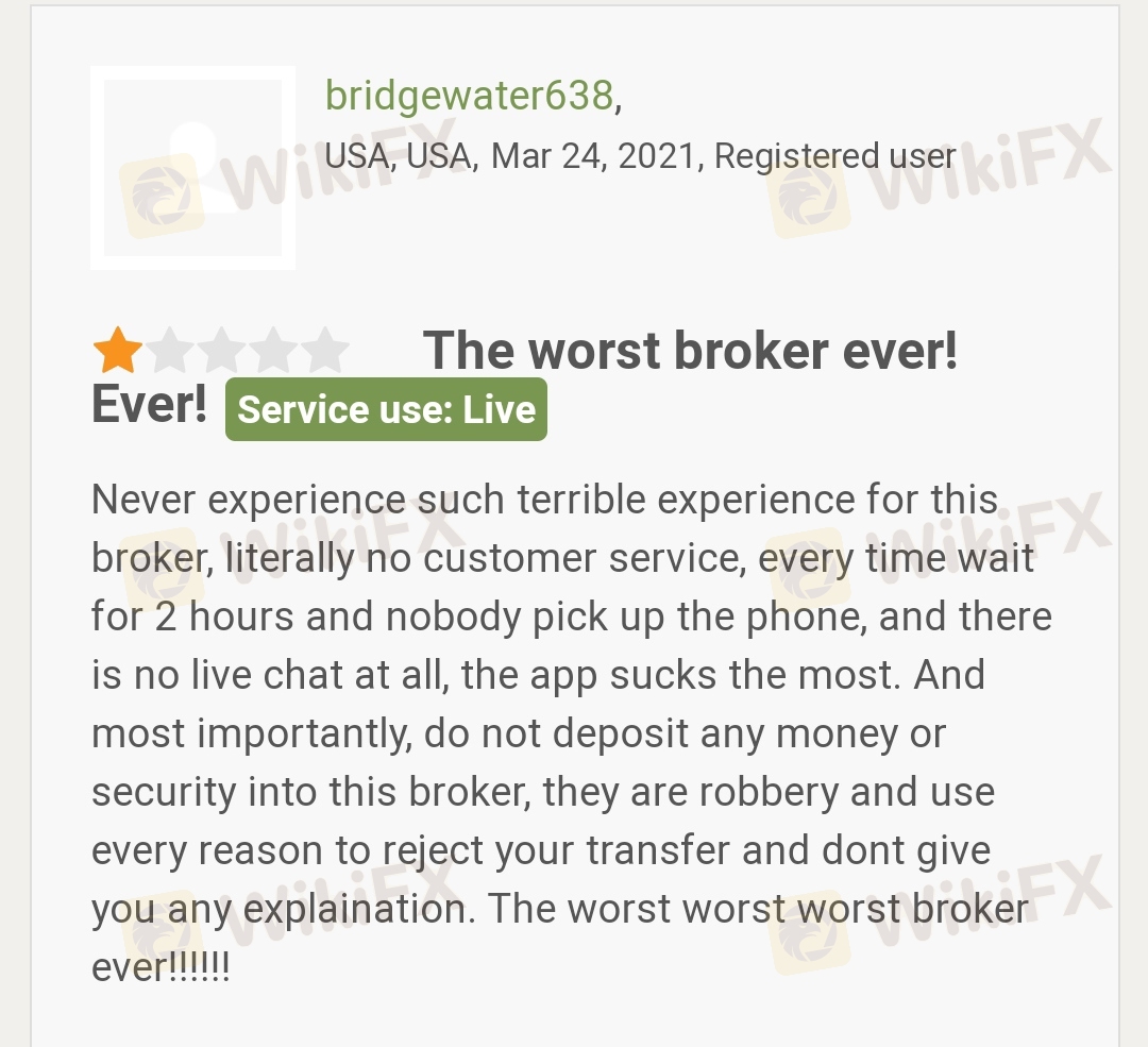 一位客户投诉该交易尚的客户服务非常差,无法出金。
