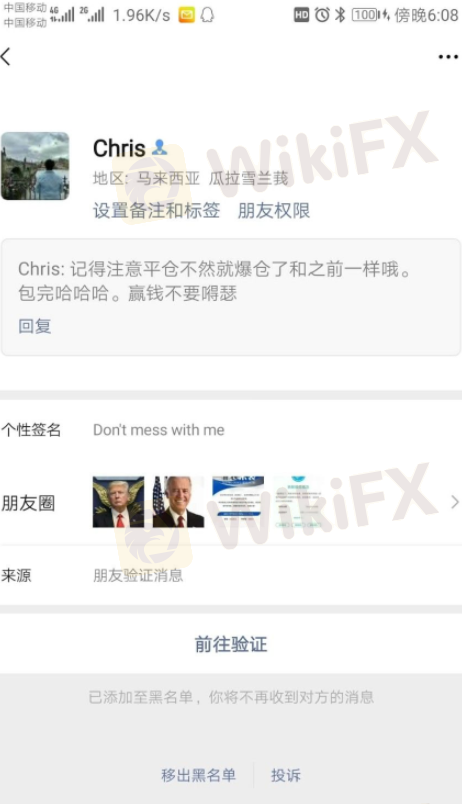 我在经由朋友介绍后和该平台业务员A某进行了联系并开户入了金。随后,由于发生了不和,我断掉了和A某的联系。然而,正当我认真做单的时候,先后受到了来自平台业务C某的骚扰。C某先后以邮件和微信添加好友的方式对我进行了诅咒,并声称希望赶紧爆仓,看你怎么得瑟!