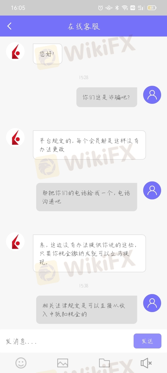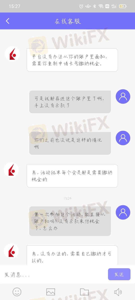 这个外汇交易平台操作虚假活动,诱导客户参加,客户赚了钱后又说要缴纳20%的税金,关键是税金必须另外缴纳,不能从账户里扣除,我的钱都投进去了,哪里有钱缴纳税金。活动之前也没有说明这个规定,这就是欺诈啊。