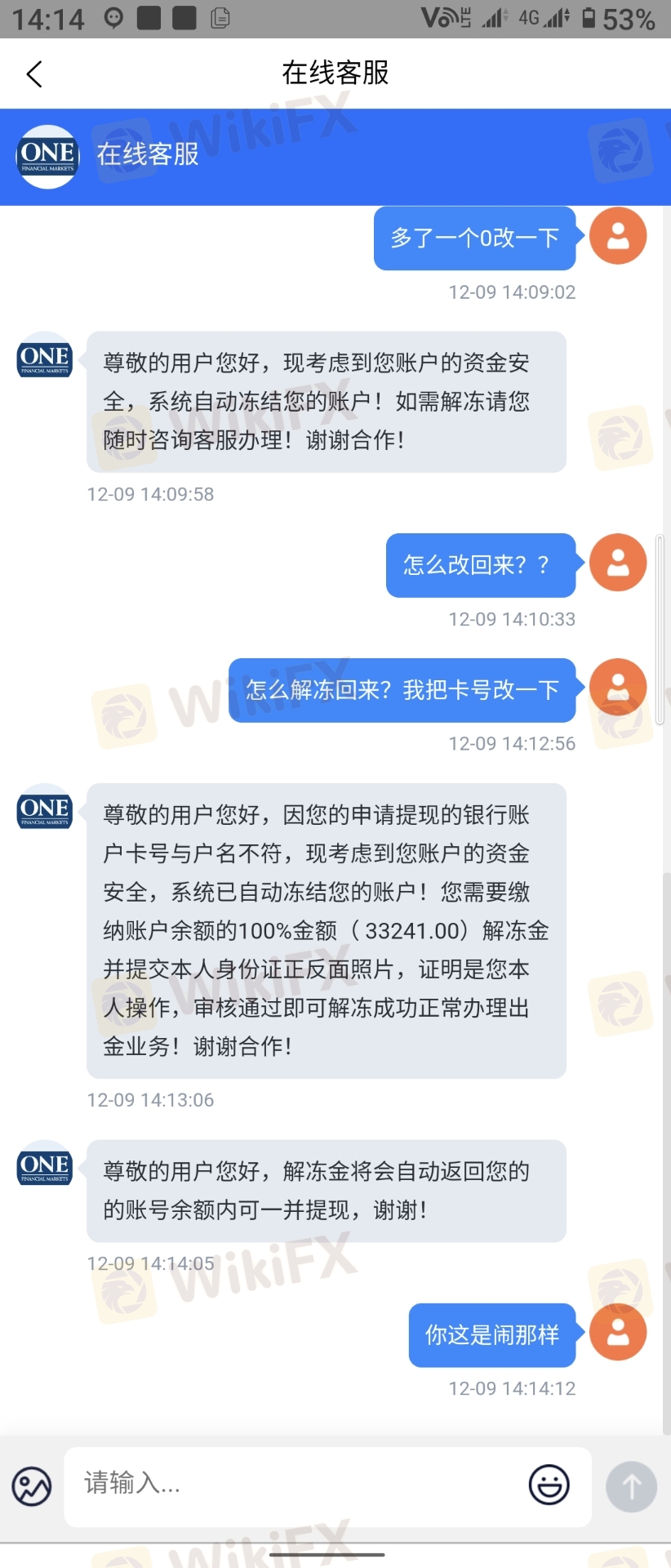 故意冻结帐户不给出金