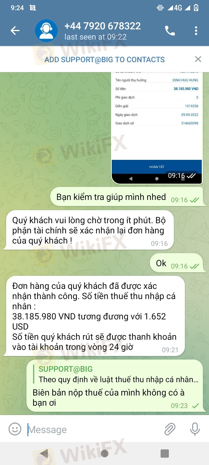 ngày hôm nay tôi đã nạp 20% tiền thuế .công tý thông báở trong 24h sẽ chuyển tiền về tài khoản của tôi.vậy mà sau đó họ nói là do tài khoản của tôi được chuyển tiền từ 2 tài khoản.giờ họ bắt tôi nạp 5% số tiền rút để xác thực tài khoản ngân hàng.gây khó dễ cho tôi không thể rút được tiền ra