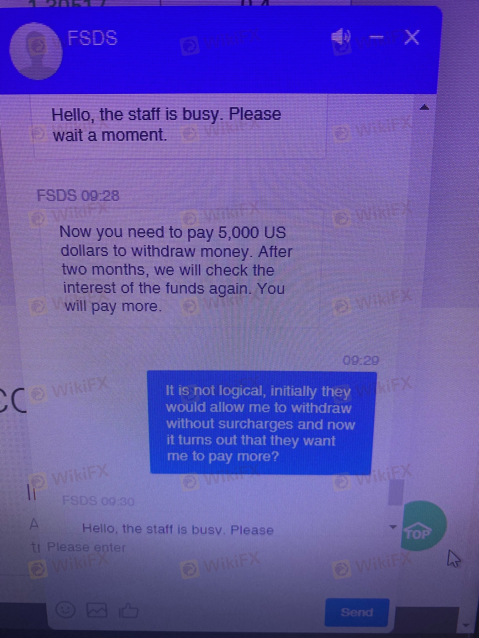 Estimados, es posible se estén tomando su nombre ya que no permiten retirar y me piden 5000 usd que es ilógico cuando ya había pagado otros montos para poder operar y retirar el dinero, me parece es una estafa y está es la página web https://fsdsglobal.ltd. me han puesto trabas de todo tipo y el día de hoy me escribieron sin que yo me haya comunicado diciéndome que para liberar mis fondos debía cancelar esta cantidad, cuando se suponía que ya el 13 de julio liberarían todo y además de forma amenzante me van a bloquear por 2 meses, seguro quieren estafarme el dinero.