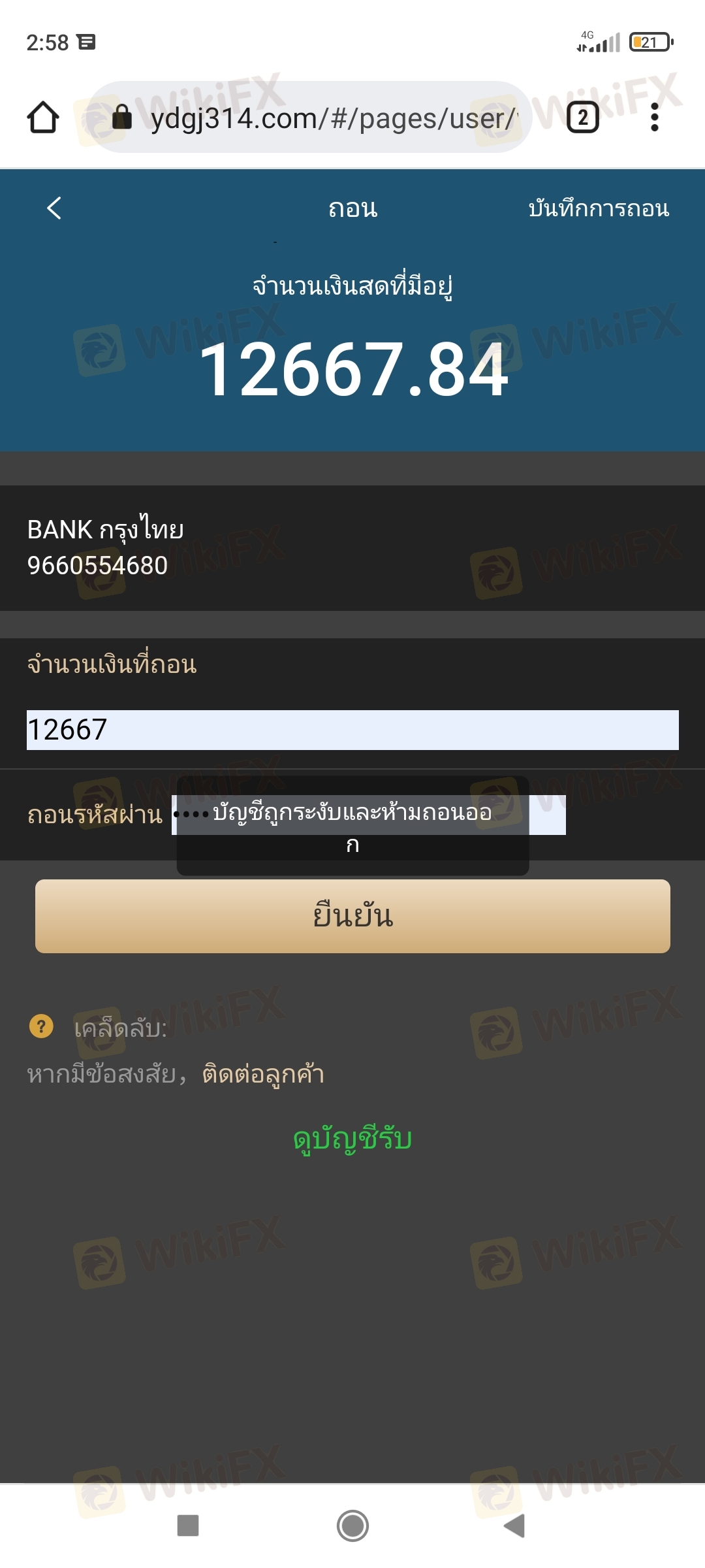 ไอดีผมถูกระงับได้ไง แล้วคุณบอกอีก 3เดือนผมจะถอนได้นิ สรุป ผมจะได้เงินคืนหรือไม่ หรือว่า 12667 จะโกงคับขอเหตุผลด้วย คุณเป็นบอกเองว่าถอดได้