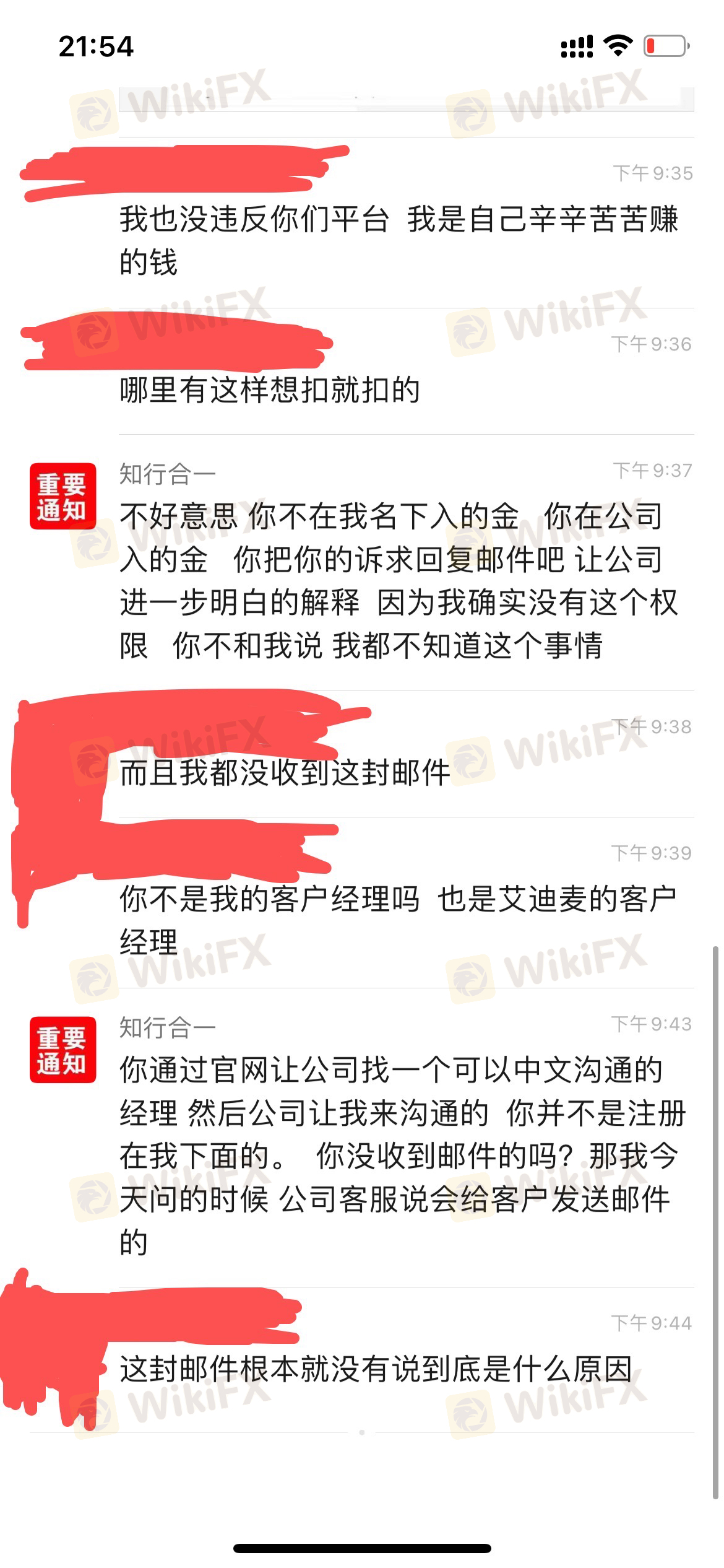 艾迪麦Admirals平台不说明原因直接扣除全部盈利,还把账户注销,显示账户无效,客户经理还踢皮球,说不在他的没有权限,不是他负责的部分。账户翻倍了,就直接扣盈利,想扣就扣,连一个理由都不给!!!坑平台大家避免入坑。