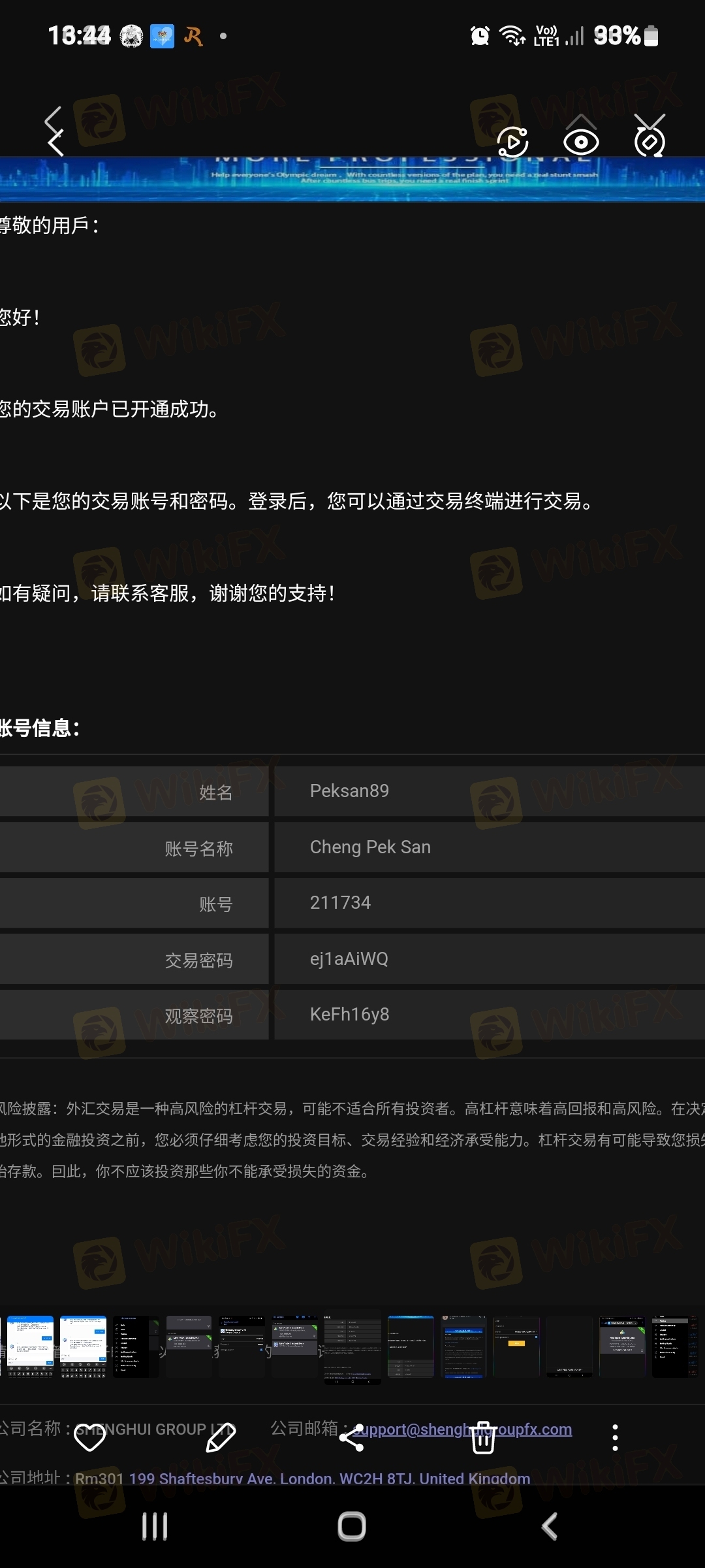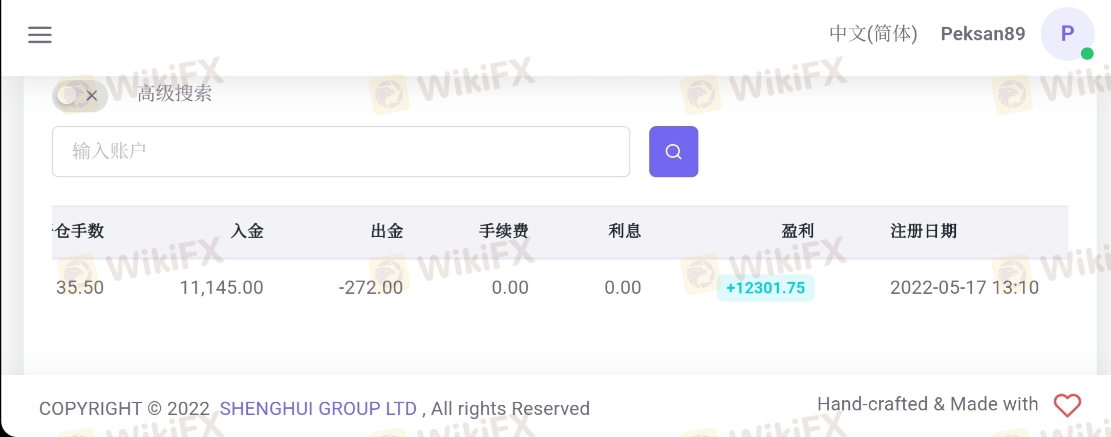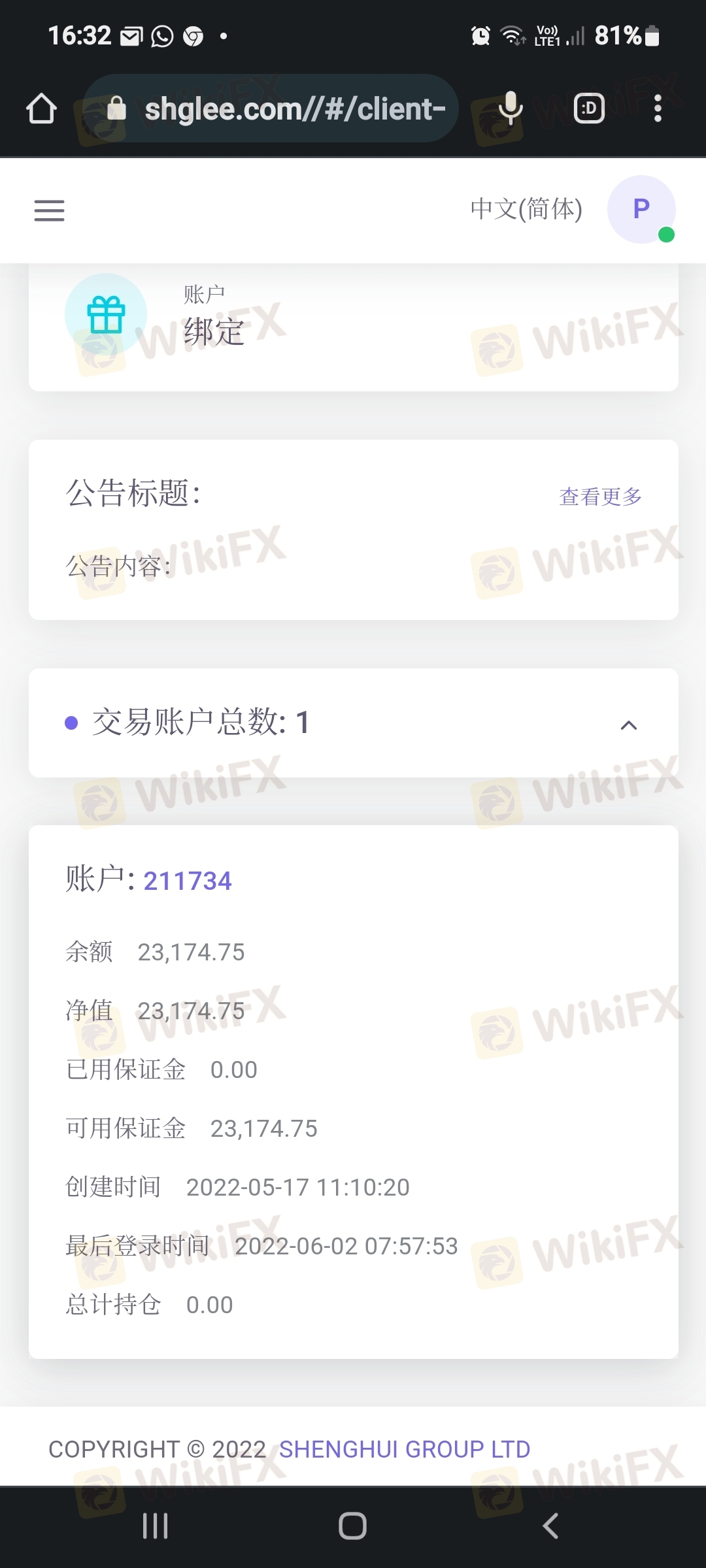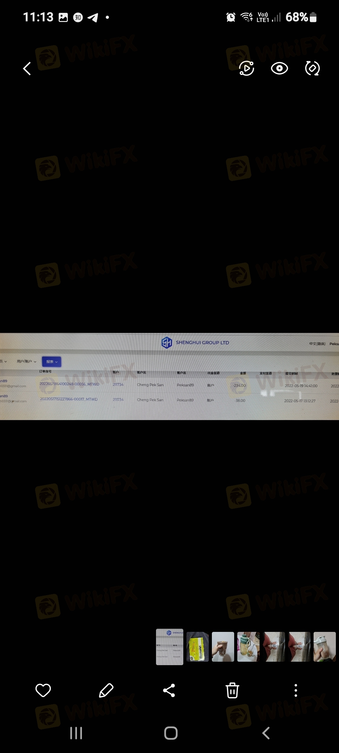 本人2022年5月17日 通过 shenghui Group Ltp (https://www.shenghuigroupax.com) 注册及入金MT5做交易, Shenghui Group 交易帐号211734 ,故放48402.55马币曾出金310美金;不到一个星期的时间最后本金利润21174.75美金, 本人将在2022年5月26日 通过broker客服申请出金9千美金但告知需要缴纳百分之20%才行出金,我还给了2千缴纳金,觉有诈未入金了,曾在一个月前爆料过案号FX1665820480,未接人何讯息姑再次投报, 谢谢🙏🏻🙏🏻🙏🏻 恳请帮忙处理,不甚感激!!!