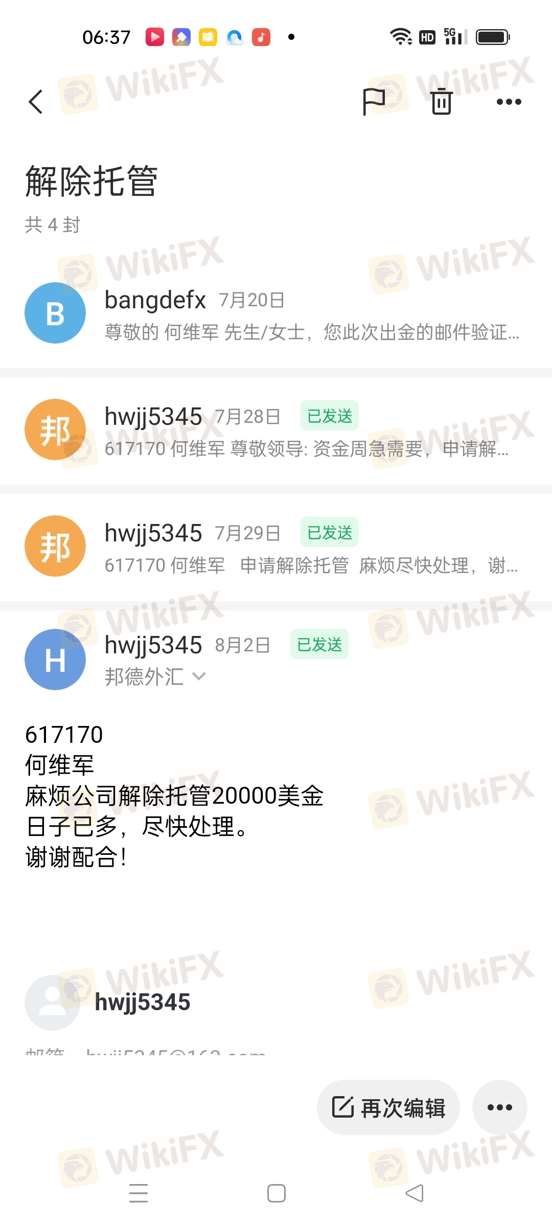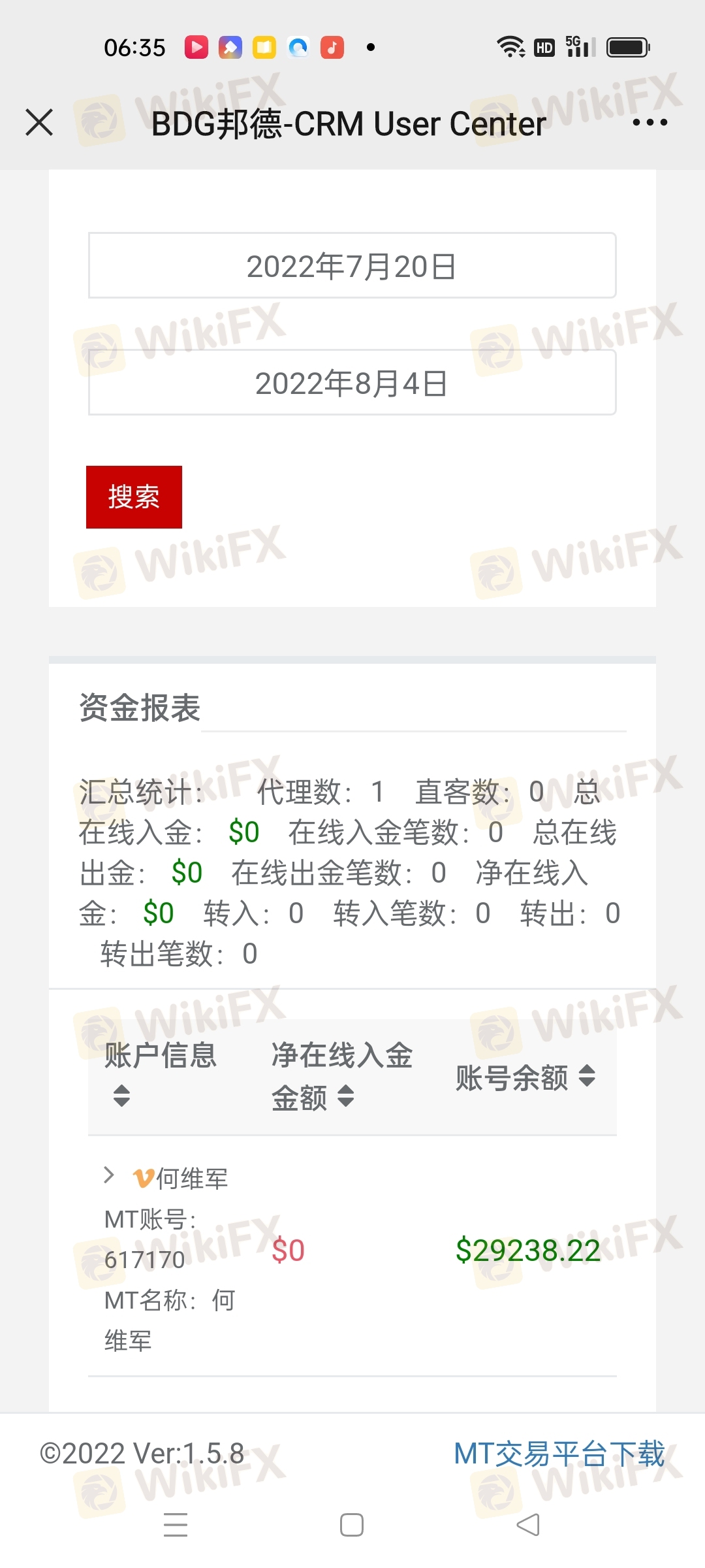 2022年7月20日,提交出金20000美金,直至今日未给出金 。