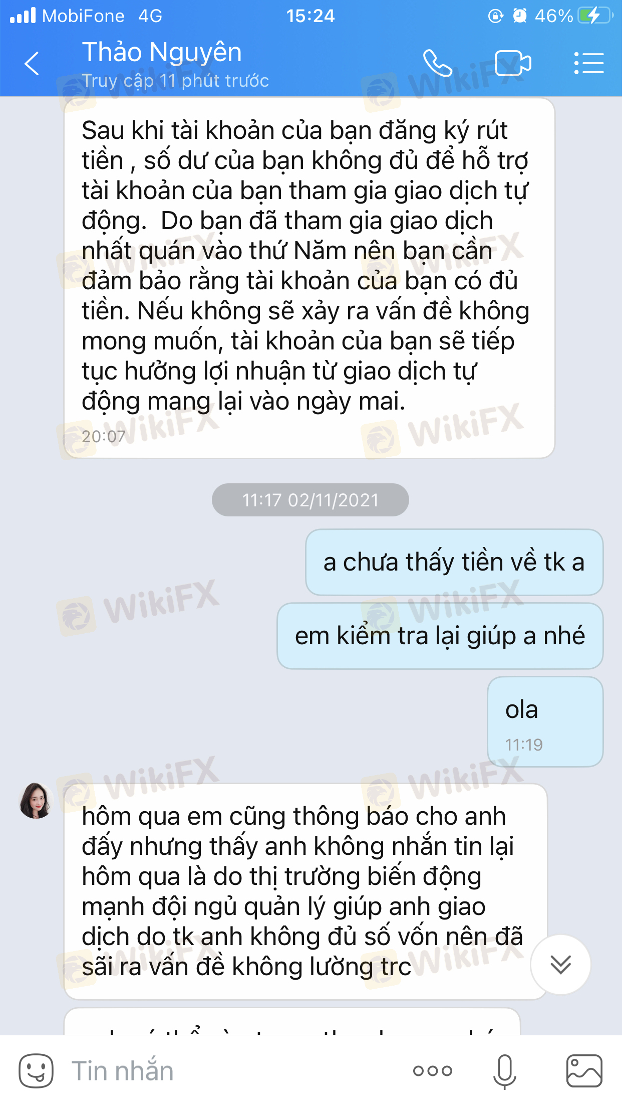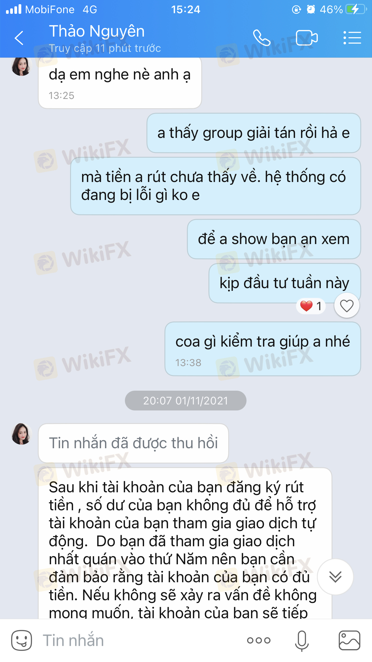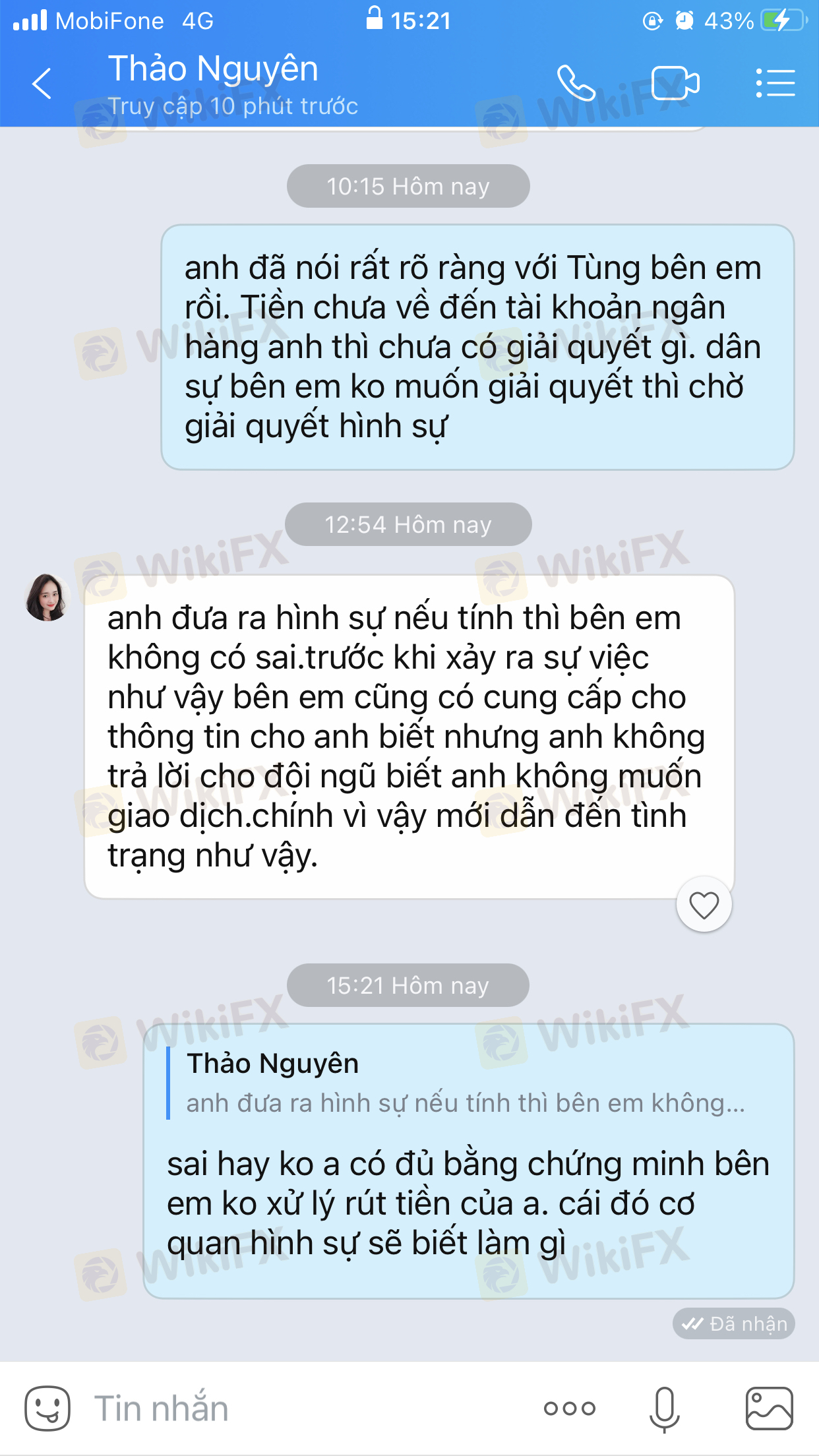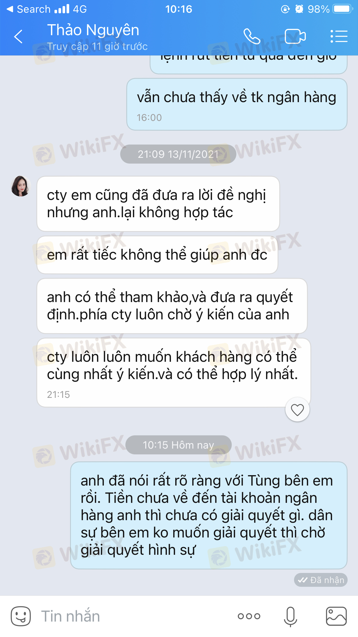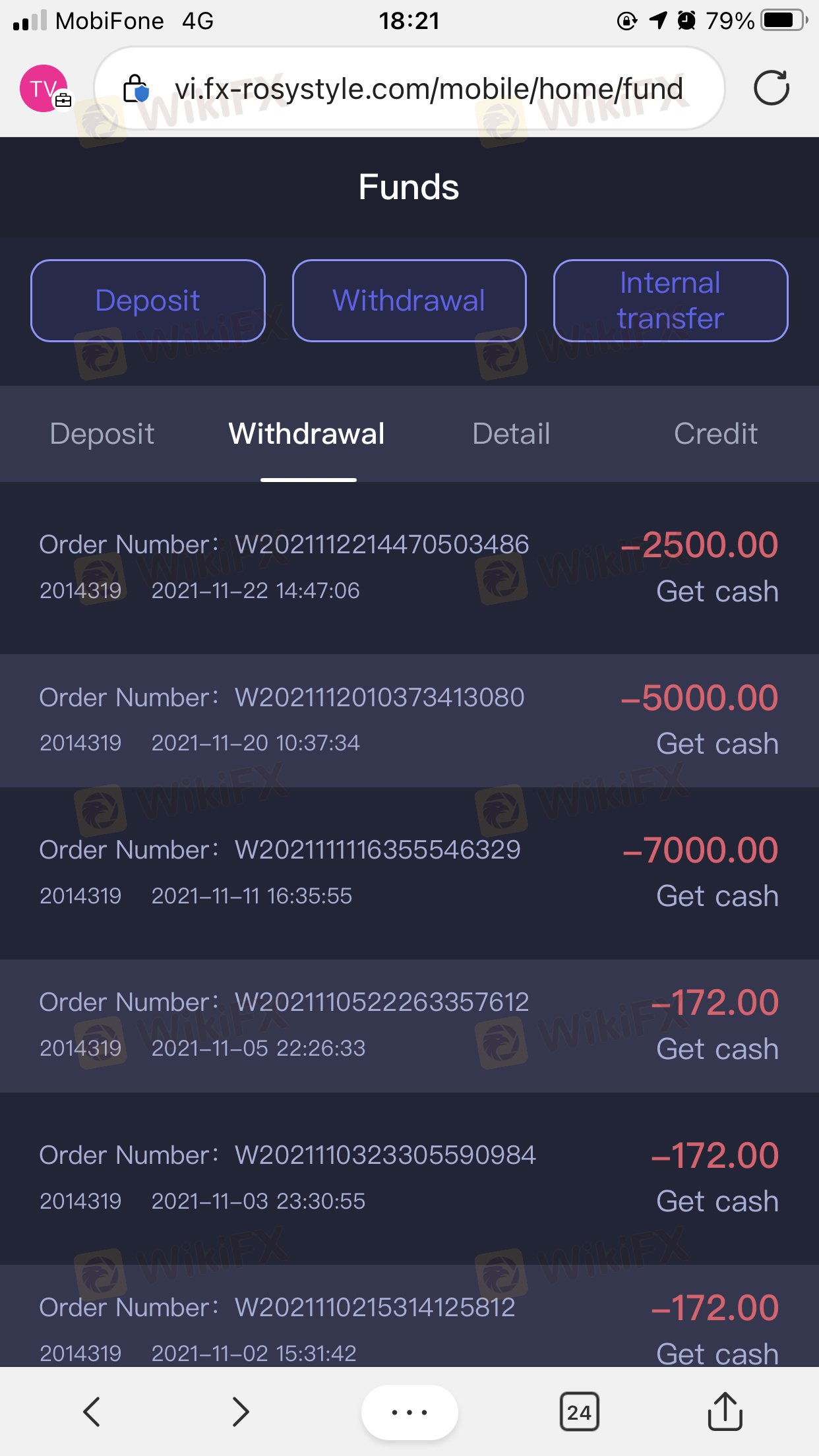 Tôi tham gia sàn Rosystyle wealth và nạp vào 10000$. Sau đó tôi cảm thấy nghi ngờ sàn này và làm lệnh rút tiền ra nhưng mấy ngày tiền không về và tôi luôn nhắc chổ chăm sóc khách hàng xử lý tiền về cho tôi nhưng bên đó hẹn hứa xong 1 ngày khuya sàn này làm lệnh bay màu tài khoản của tôi. Hiện tại trong tài khoản của tôi còn 1200 nhưng cũng không có cách nào để rút tiền về được.