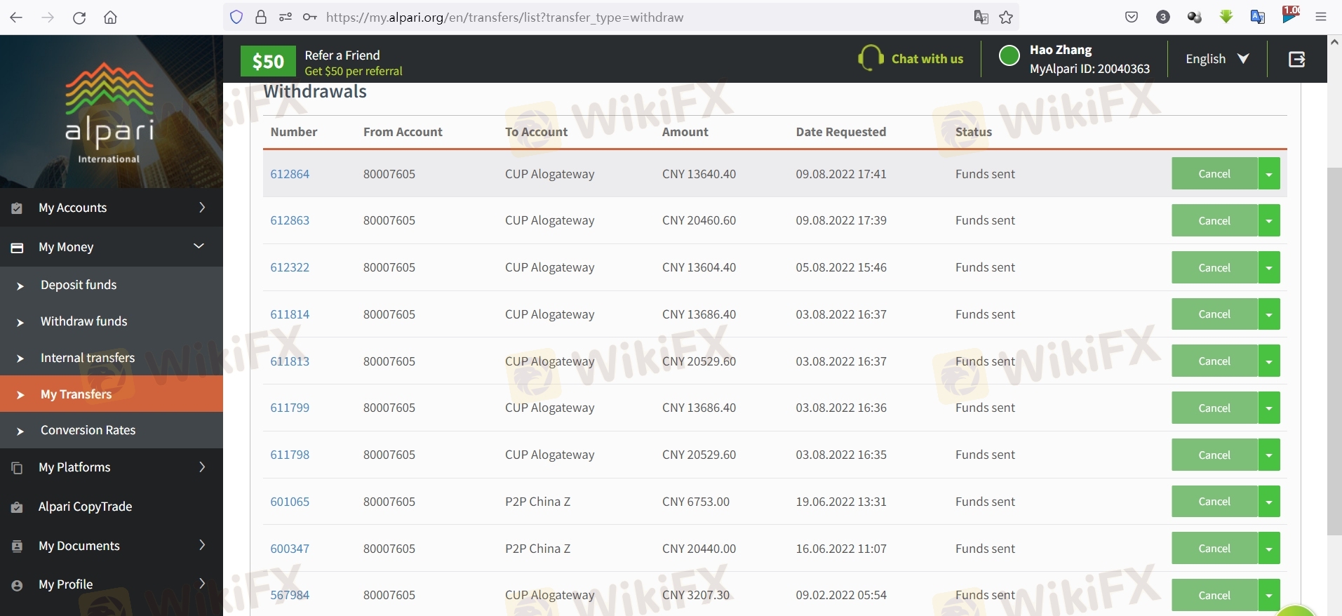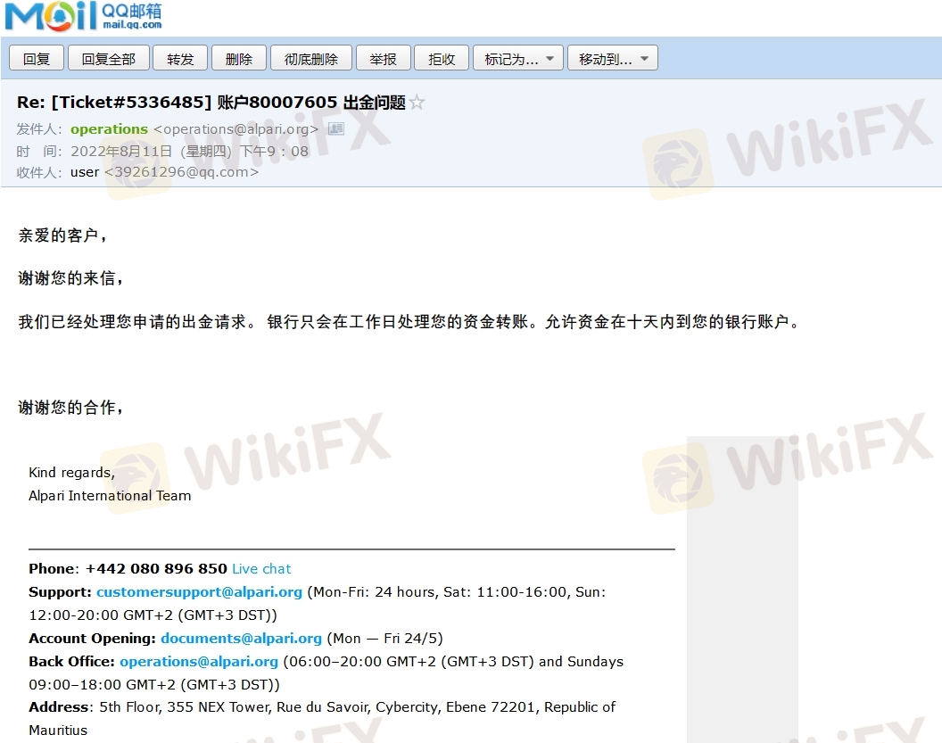 从8月3日申请出金,截止到今天8月15日,一直没有到账。 6月份申请过出金,基本都是两天左右到账。