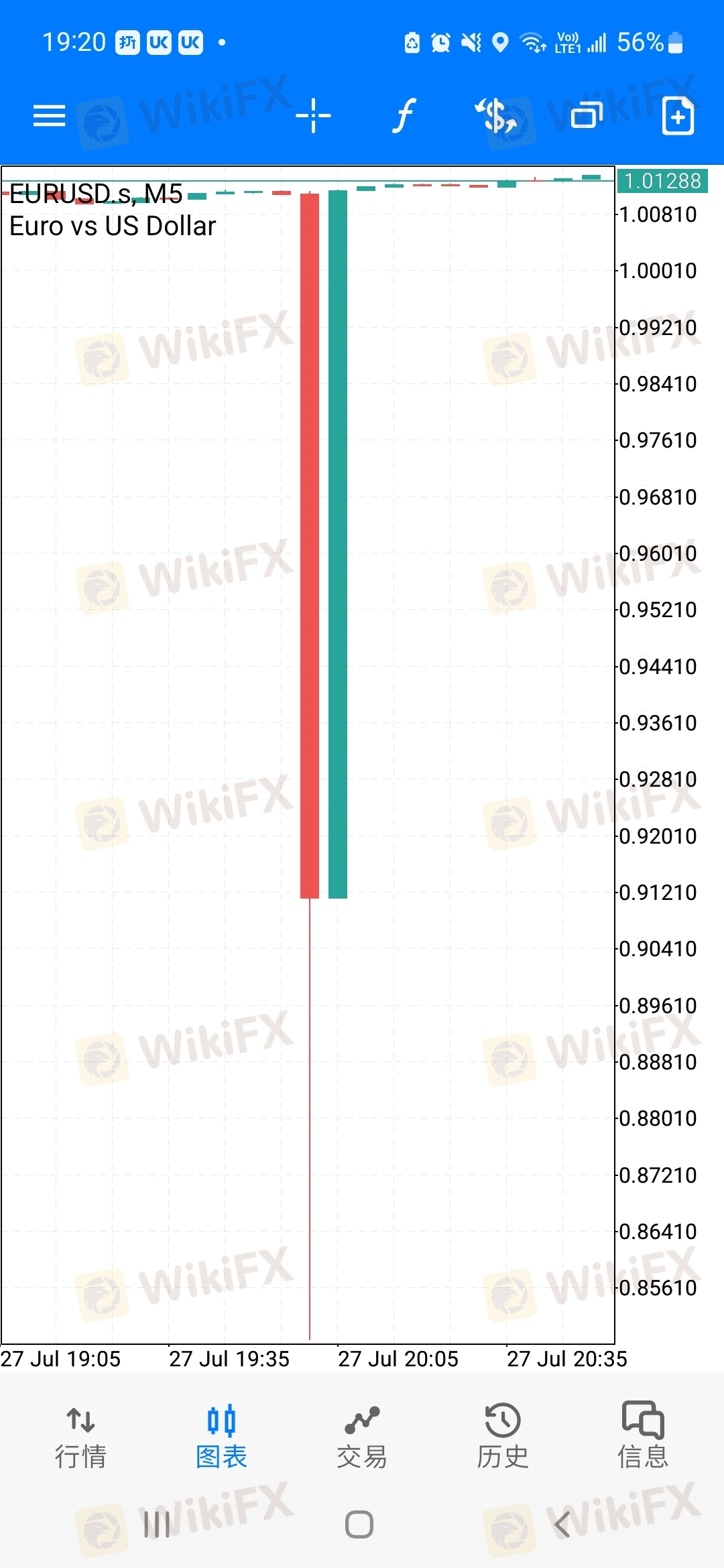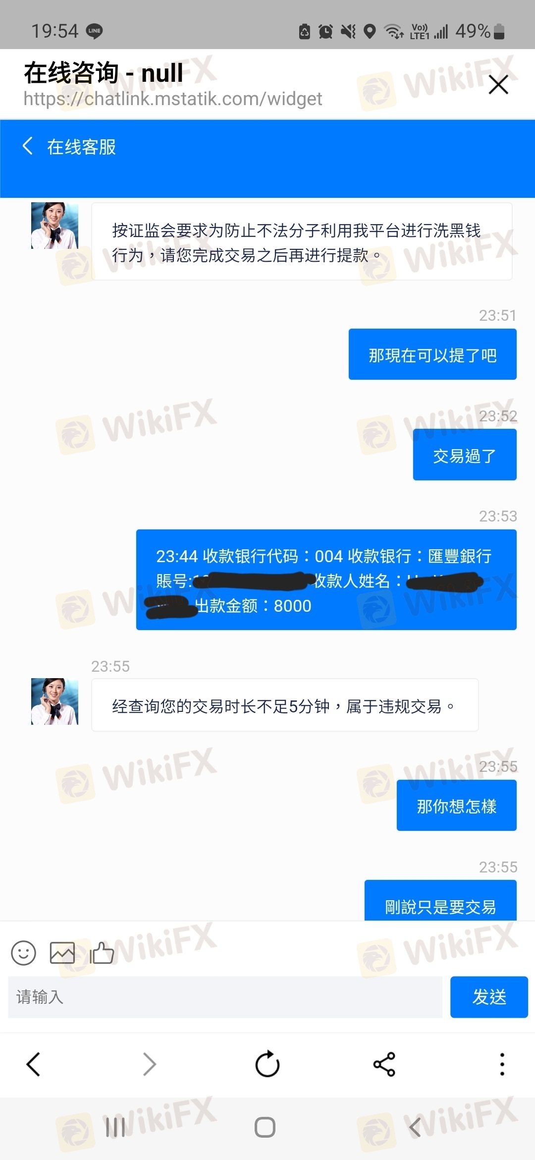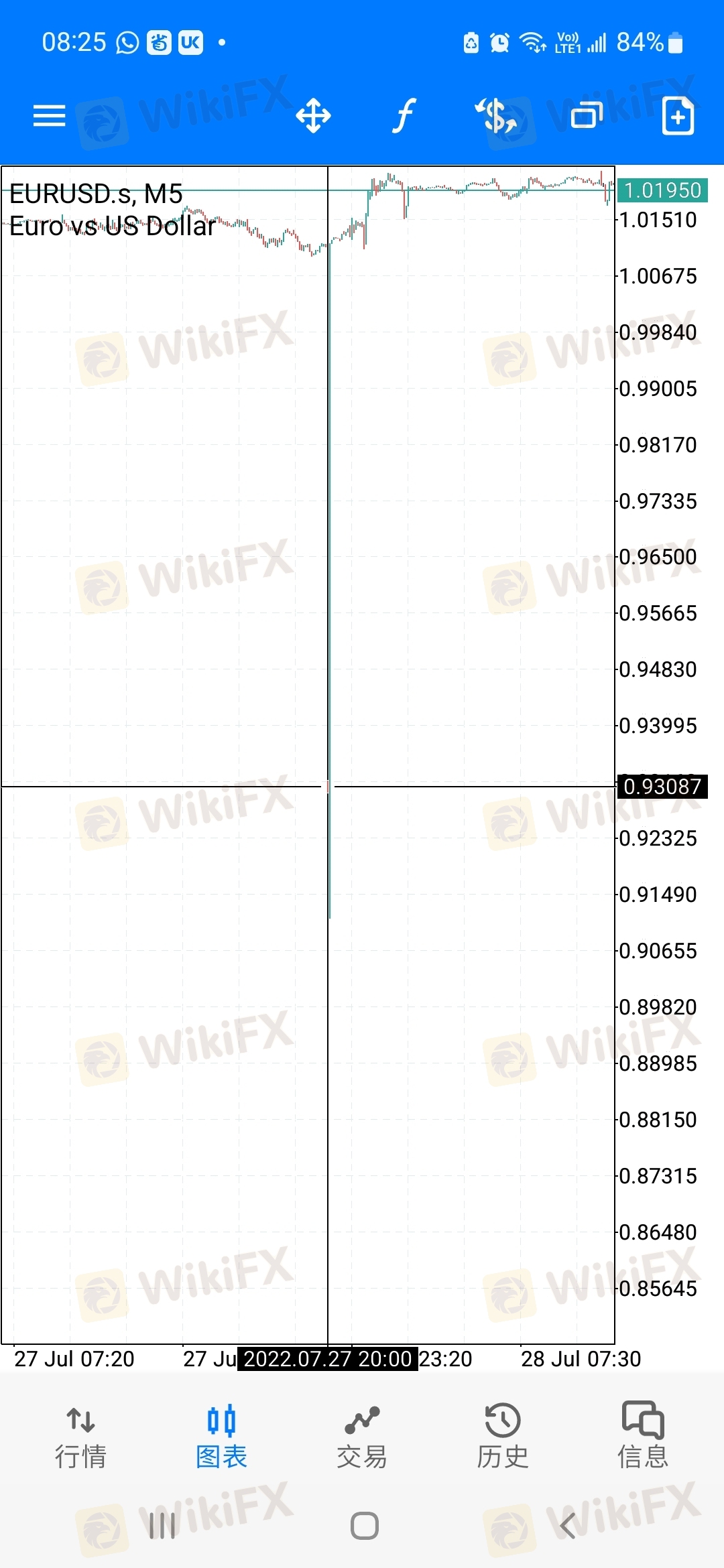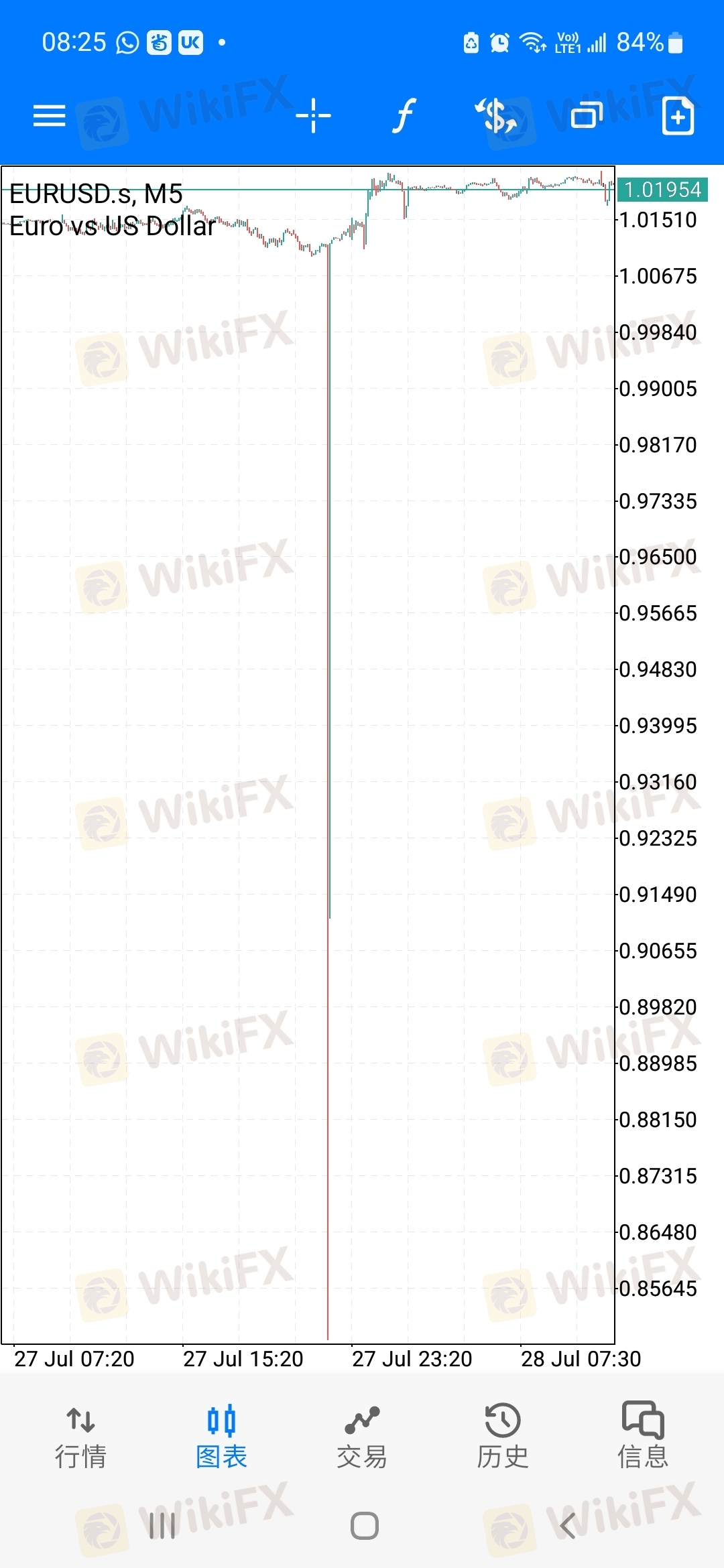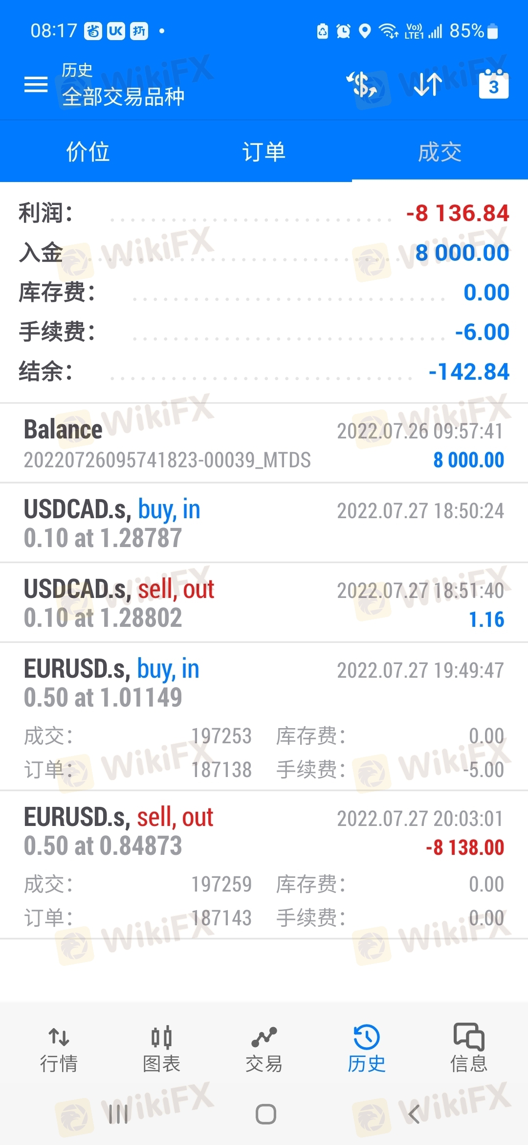 我在入金8000後两天都没操作过一次,想提款客服不给,说要交易手数五手还有5分钟才能提款,那麽我就买了eurusd,0.5,一买就跌不过也 就20美金,十分钟後一下跌到0.848。 帮我直接爆仓,20年来,根本没有到过0.848,为什麽一下子下跌,但当天根本没到过跌到0.084。 这黑平台是不想我取金操作了