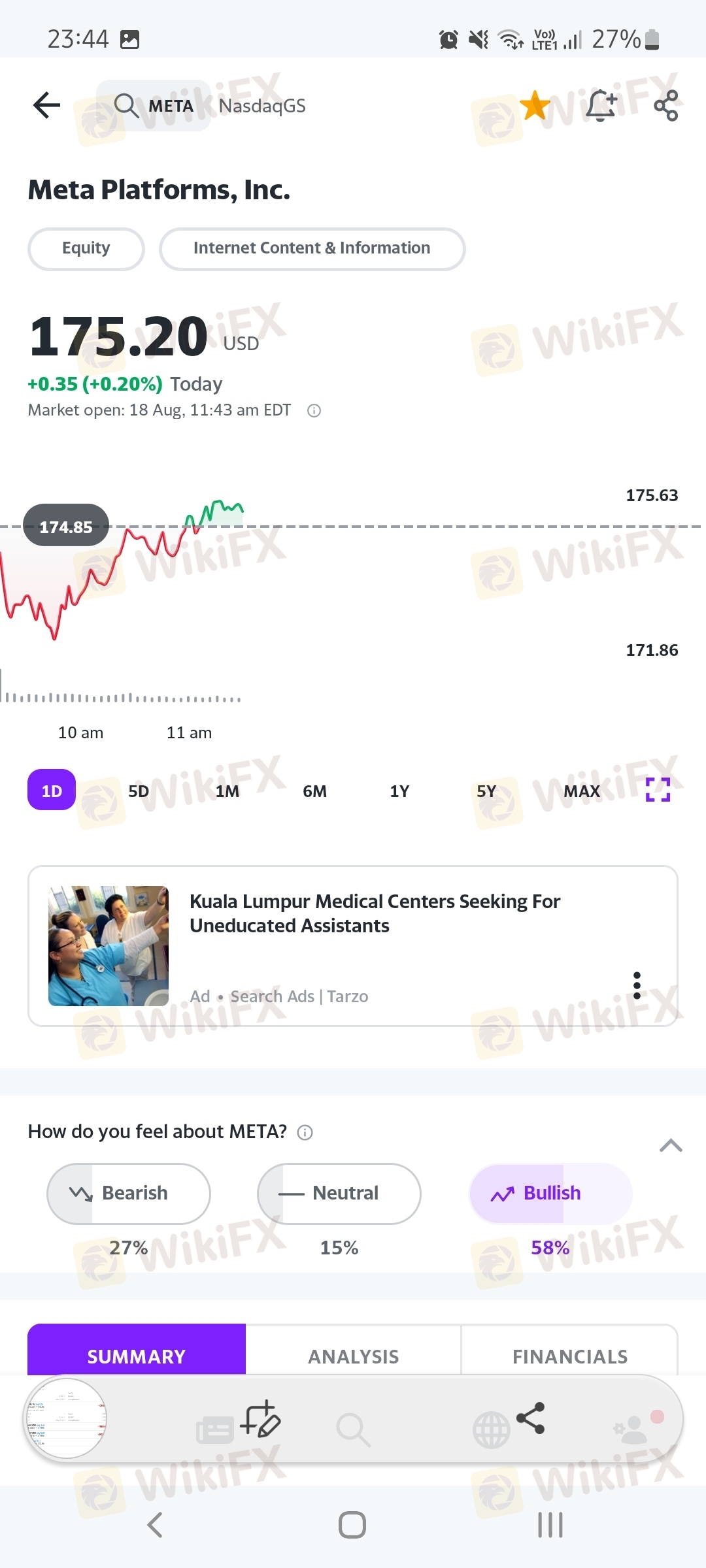While the stock opened there is frozen candle and it takes more then 10 minutes, I even chat via online and raised this issue, unfortunately their respond are very unpleasant and unprofessional, delaying the problem without giving right solutions. platform : MT4 server : instaforex-SINGAPORE.com leverage : 1: 600 counter : #meta #fb