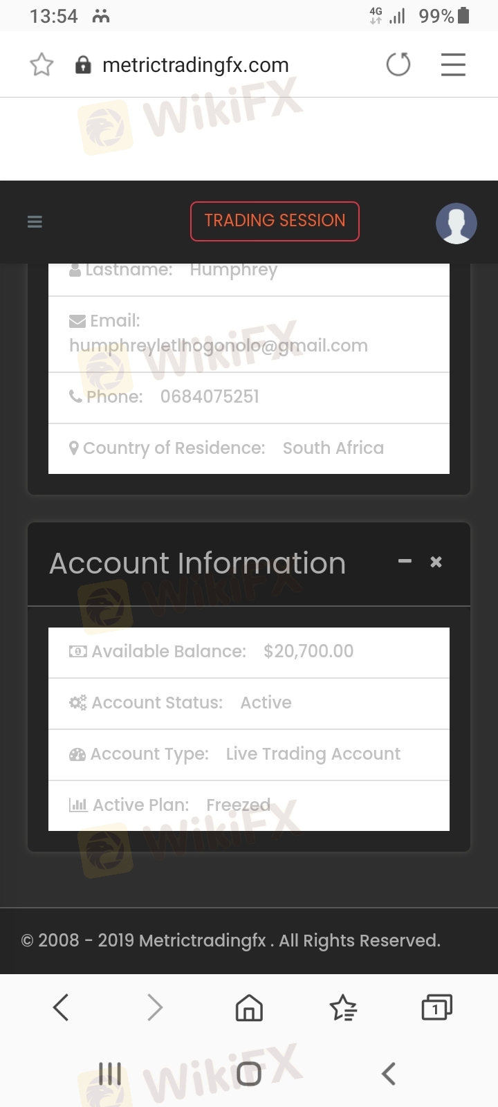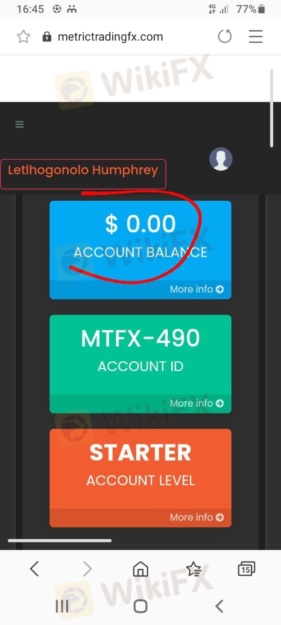 我被一个叫mbali和Barry Silbert的人骗了,他们说如果我用R3000为我的metrictradindfx提供资金,它将在 4 天内产生 R33000 我确实看到它产生了,但是当我不得不提款时,他们说我的账户确实超出了限制,我必须用 R11000 升级我的帐户,才可以提款