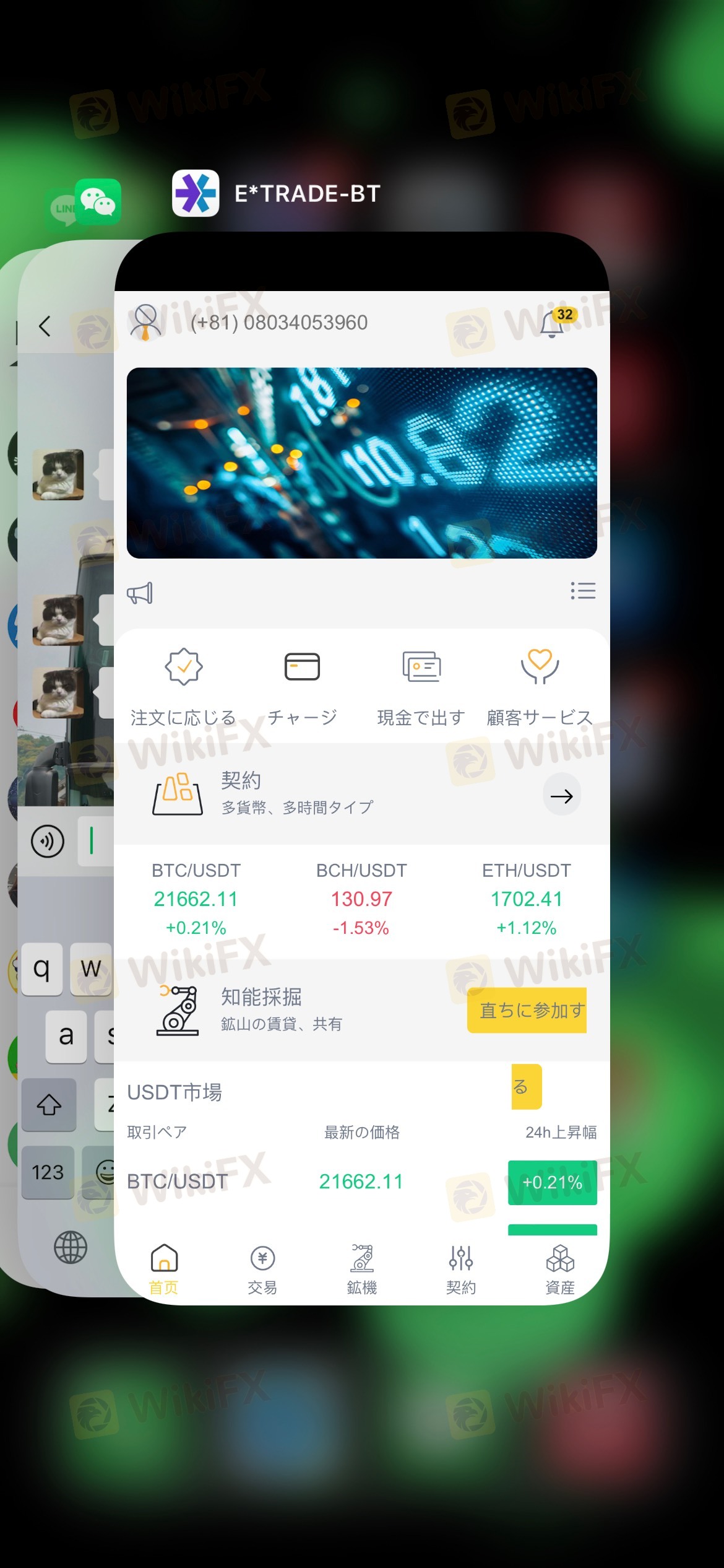 7.27那天我去福冈的路上,路过冈山县的时候,无意间看到了微信有个附近的人添加的功能,然后我一进去看才知道是有人加我好友了。刚开始我一直在想肯定是住在冈山附近的华人,没过多想我就通过了人家的微信好友。我俩在微信里没聊多少,人家就主动的加了我的line。在line上简单的寒暄,便拉进了关系,问我每天在做什么呢。也没有多想就和她分享了自己的生活和旅游经历。我俩就说出了兴趣爱好和谈了人生的方向,刚开始就说我俩就有缘分。随后,在我玩完回到千叶之后,过几天(也就是8.4那天)就告诉我的赚钱方法,当初我也很迷茫就轻易的相信了她。一开始她先给我讲了一堆的金融知识。在一步一步的叫我如何打开平台软件(etrade)去赚钱。然后,后来发现赚的越来越多就慢慢放松了警惕。然后过一段时间也就是上周一(8.15那天),想把钱提出去,结果却被冻结了。被客服告知要交一些个人所得税(1747.67USDT)才给解冻。在8.18那天,当我交完个人所得税之后,发现资金已经冻结了。再次提现到自己的币安账户的时候,虽然在平台提走成功之后,但是在币安看了一下,当初输入的地址重新核对了一遍。结果还是没有到账,但是币安到现在还是没有到账。问了客服说,资金掉落,让我需要再掏2000usdt。真的很气人。我就跟她各种理论,还是不行。只好自认倒霉掏了钱。等了24小时(也就是8.19晚上8点)之后,又被告知又找不到丢失的资金,让我又要去掏2500usdt。这回不惯着她和客服,和身边的同学还有朋友商量就选择性去直接报警。当初报警的时候,被警方告知证据不足,让我回去把资料准备好再去报警。随后在8.22那天亲自去东京找了中国人的律师,把事情的经过再次复述了一遍。并把证据再给律师看了一遍。在律师的劝解下,成功要到了对方的工作名片。现在还在调查中。