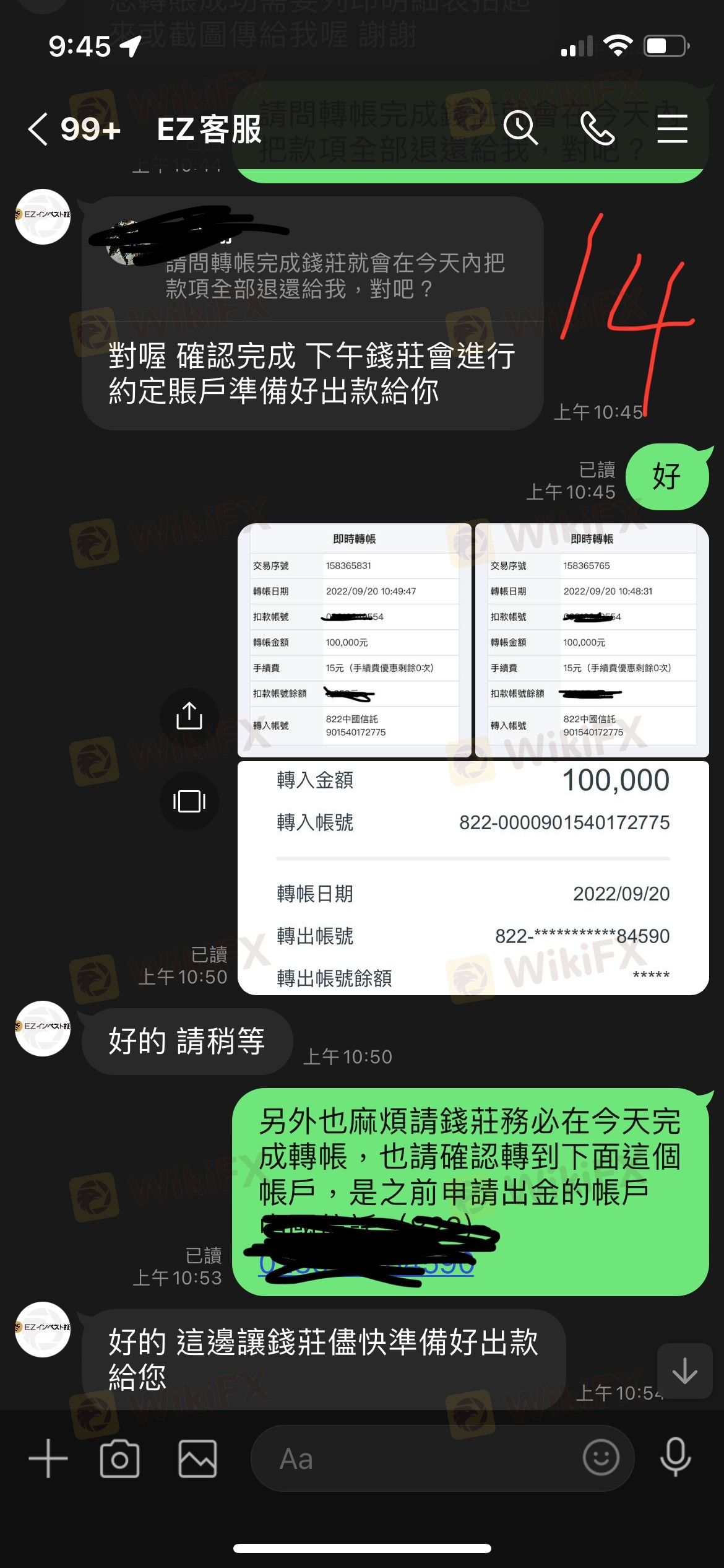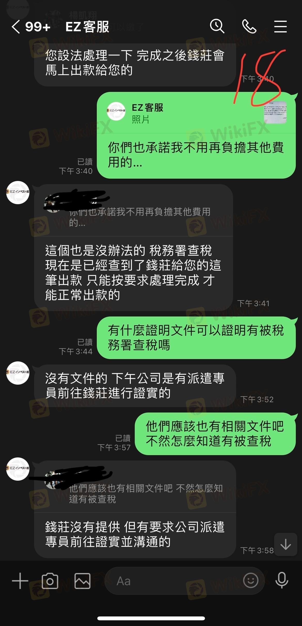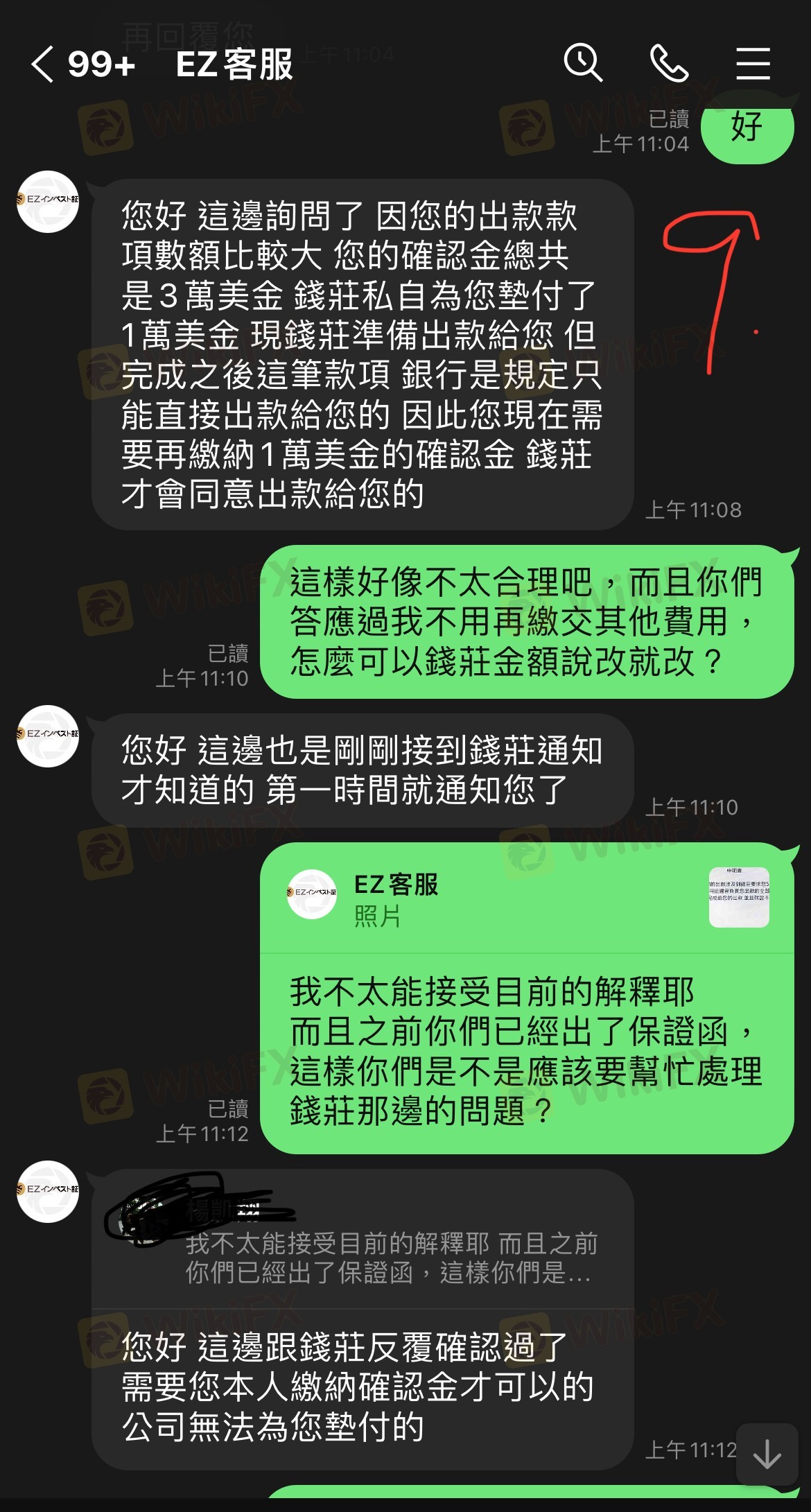 接续前一则擅自将出金交由钱庄汇款,後续持续要求缴交确认金,流程金...等各种名目的款项,并迟迟不汇款,也不履行保证函内所承诺的内容,最後说是税务机关冻结了所有款项,却还要求缴流程金才成完成汇款,总计90K USD, 连一块都没有退还