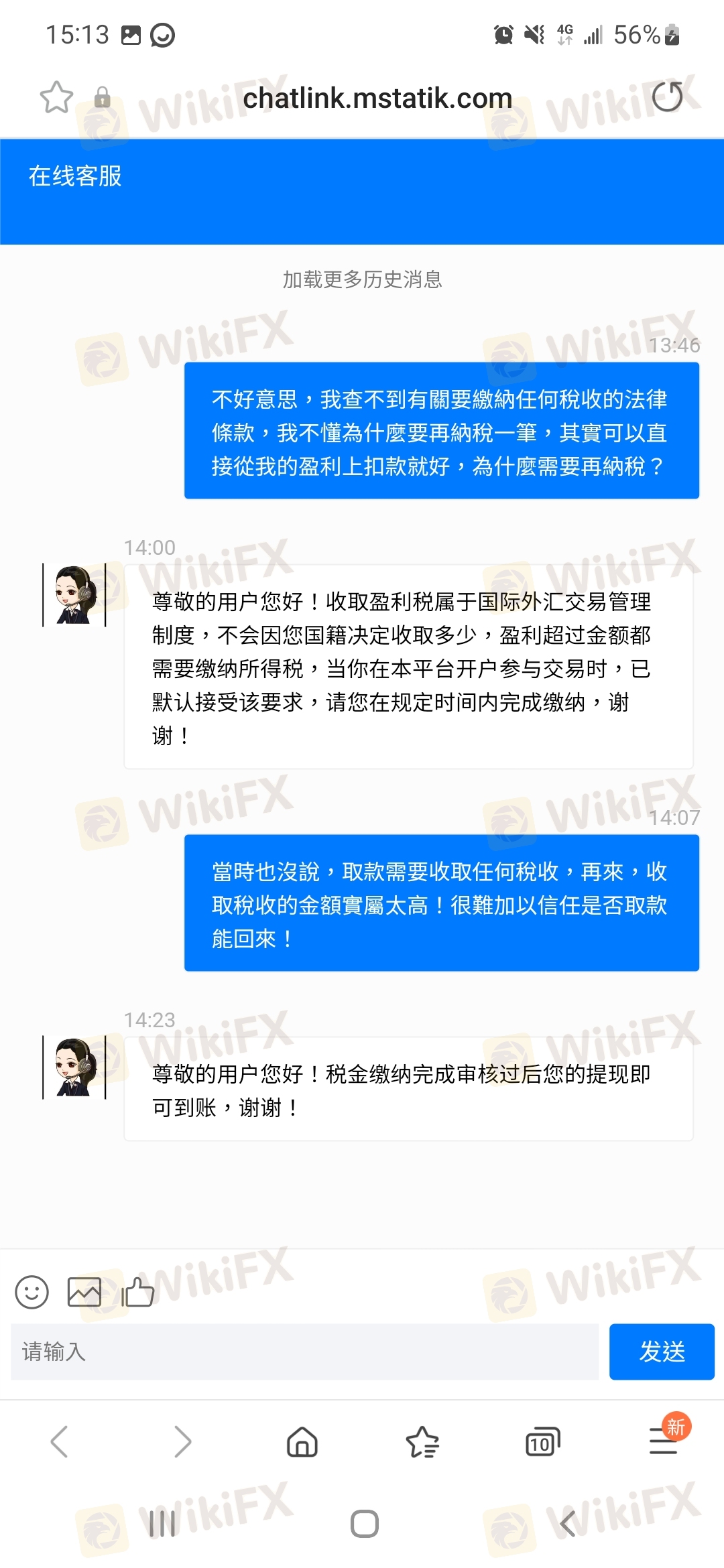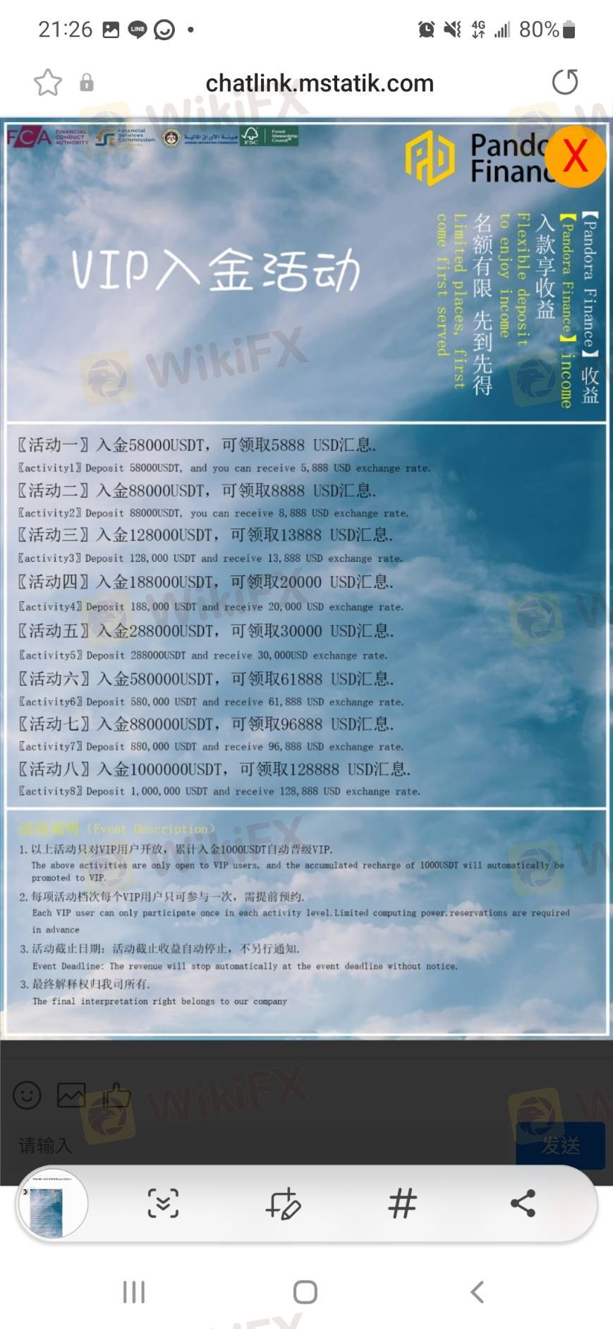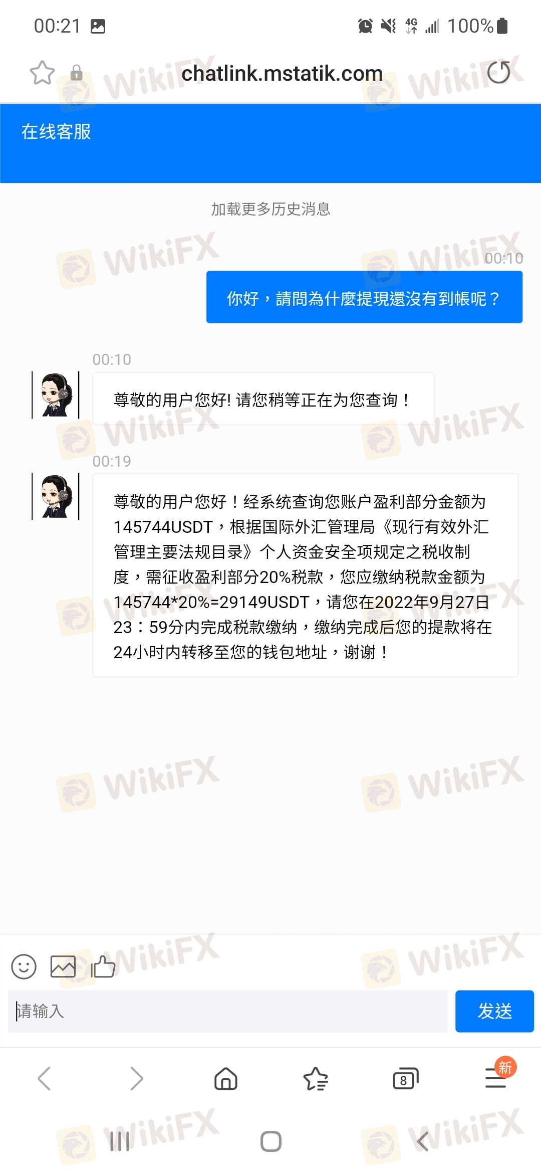 大约8月中旬在IG上认识一位,具有新加坡籍的台湾人,一开始只有闲话家常,後来他渐渐提及自己有投资国际黄金,并且愿意教我一起投资,期间也开始对我展开追求,编织一起赚钱、一起为未来努力,打造更好生活的美梦,我们每天都在通电话,以降低我的戒心。後来他要我按照他的指示,下载币安、MT5及Pandora Finance Co.,且一步步教学如何交易,带我入金USDT,刚开始先入5万台币等值的USDT,买黄金赚收益小赚,第二次叫我入金为了本金可以增加收益也会赚比较多,但是後来叫我参加的入金活动就很奇怪,直接叫我贷款,我贷到将近120万台币,要入金128000USDT,就送13888USDT收益,我参加了真的有看到帐里有13888的收益奖金,但原本是活动上没说清楚,没有说入金不到活动的金额会扣除每日余额5%,而且也不能取款。之後要准备提现了,现在客服又说要我再缴税20%的盈利,我觉得为什麽不直接在我获取的盈利上扣除,为什麽要我再去多缴这一笔税金。