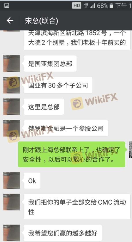 国亚下属俄罗斯联合金融不给出金封停账户,报警后迟迟不见处理,国亚以冯浩宋莹辞职,原外汇部解散为由推脱冯浩宋莹一个跑到山东一个躲在北京,四个月以来由于各种原因案子没有进展,协商无果的情况,希望大家警惕