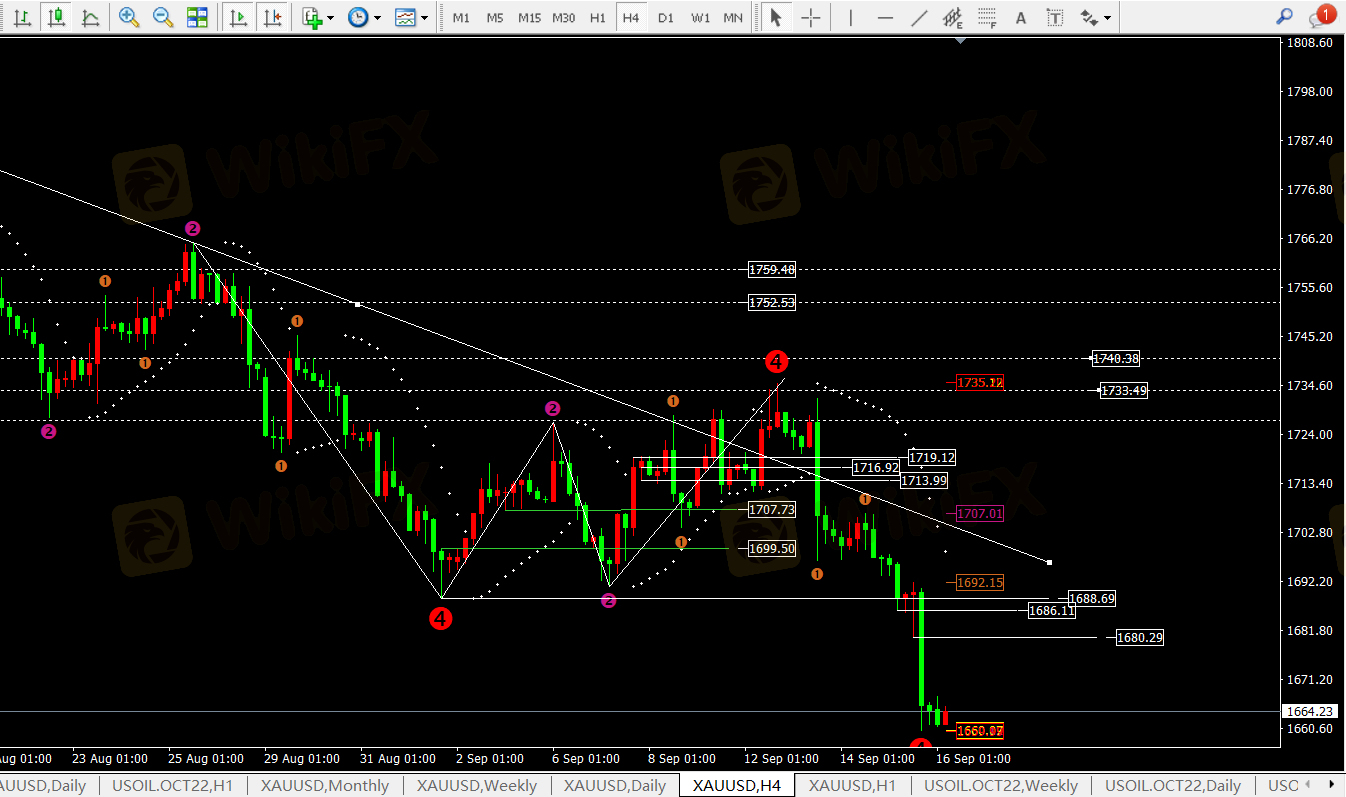 ①	首次跌破自2020年以来下跌的1677-1680低点出现惯性下跌;