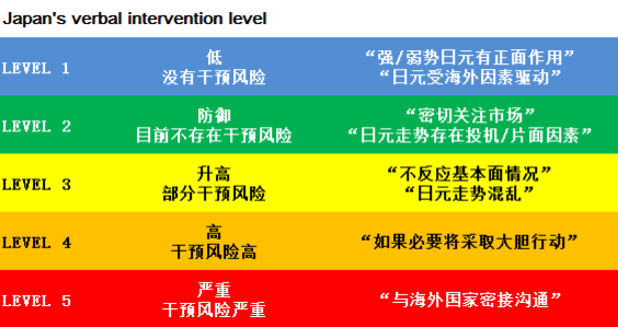 日元跌爆了,日本政府不断“口头干预”,听到“这些话”市场就要小心了   华尔街见闻   野村认为,如果日本当局使用“我们将采取大胆行动”的表述,而不是“适当/必要的行动”,干预的可能性将大大提高。   ...
