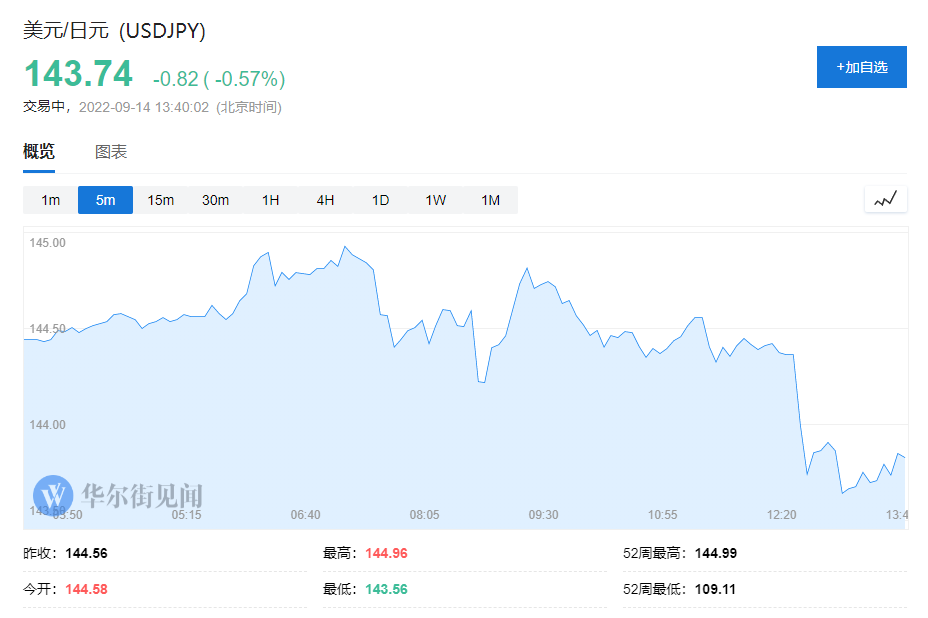 华尔街见闻   与口头干预相比,汇率审查通常被视作更强烈的干预手段。   9月14日,日媒援引消息人士称,日本央行在美元兑日元(143.00, -0.1200, -0.08%)144.9附近进行了汇率审查,即要求日本各大商业银行向 ...