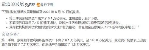 原标题:负债高、股市跌,美国家庭财富创历史最大跌幅 这已经是美国家庭财富连续下降的第二个季度,美联储国家资产负债表显示,今年3月底,美国家庭财富为149.9万亿美元,比2021年底的150 ...
